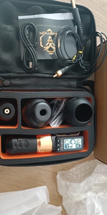 This significantly reduces hand fatigue, delivers smoother operation for enhanced efficiency, minimizes adjustment time for varying skin resistance, and translates directly into superior artwork quality – featuring crisp, clean lines and flawlessly smooth, even shading Machine a Tatouer sans fil à batterie Ambition - Mars - Gris Dotée d’un puissant moteur brushless de 280 g. Simply rotate the adjustment knob to select your stroke length, then fine-tune needle length via rotate the grip. [Complete Pro Setup & Support] Includes: 1 machine pre-assembled with 34mm grip, 1 extra 2400mAh battery, 1 lightweight 54mm aluminum grip, 1 RCA adapter & cable, 1 reusable high-temperature silicone grip (54mm size, compatible with 34mm grips), 1 USB-C charging cable, 2 o rings, all securely housed in a premium zippered case. Master any tattoo style effortlessly and with precision Alimentée par une batterie 2400 mAh, cette machine dispose d’un écran OLED affichant la tension (1–12 V) et d’un minuteur intégré qui calcule automatiquement le coût de la session selon votre tarif à la minute – pour un flux de travail simplifié et plus efficace. Machine à tatouer sans fil Dragonhawk avec moteur sans balais, course de 3,5 mm et écran cm of torque, the tattoo machine ensures exceptionally stable, consistent, and powerful output across all skin types and techniques. cm, cette machine offre des performances stables et puissantes – pour des lignes nettes et des ombrages réguliers et impeccables. [Marathon Powerhouse] This tattoo gun is driven by a massive 2400mAh battery in a distinctive, futuristic cybernetic style, this machine delivers 7-8 hours of uninterrupted runtime for demanding sessions; its OLED screen clearly displays real-time voltage (1-12V adjustable), includes a built-in timer, and features auto-billing – seamlessly calculating session costs during breaks based on your customizable per-minute rate, simplifying workflow and maximizing productivity EZ Kit de Tatouage - Tatouage Sans Fil Kit Professionnel Coplet avec... Kit Tatouage Debutant Complet Ambition Ninja Max 280 Machine à Tatouer Sans Fil - Machine Tatouage Rotative Stylo, 7 Courses Réglables (2.4-4.5mm), Couple 280 G.cm Moteur Brushless, Double Batterie 2400mAh, Poignées 54mm & 32mm Poignées Interchangeables 54mm Et 34mm [Professional Choice] Constructed from lightweight aluminum alloy, this 137mm tattoo pen machine features two interchangeable grips – equip the 54mm heavy grip (329g total weight) for superior stability during long sessions or powerful work, or switch to the optimized 34mm lightweight grip (220g total) for exceptional comfort and balanced feel ideal for most artists