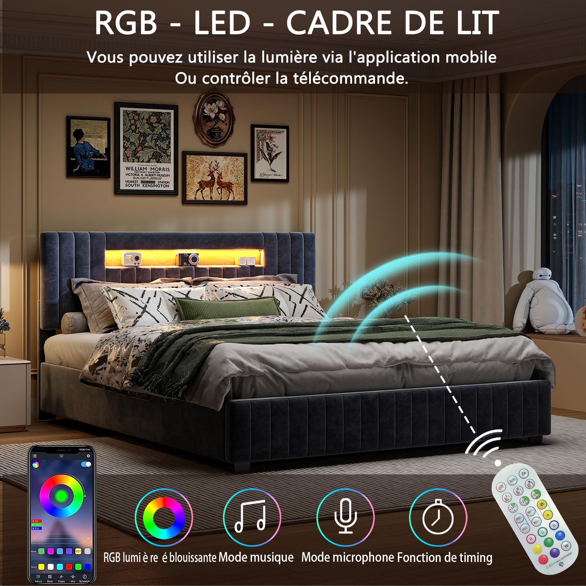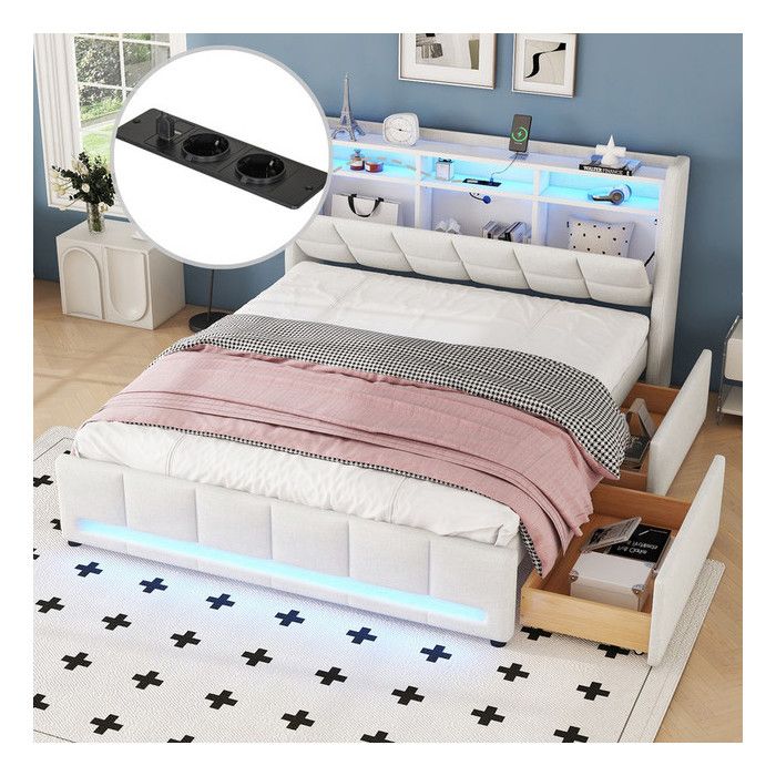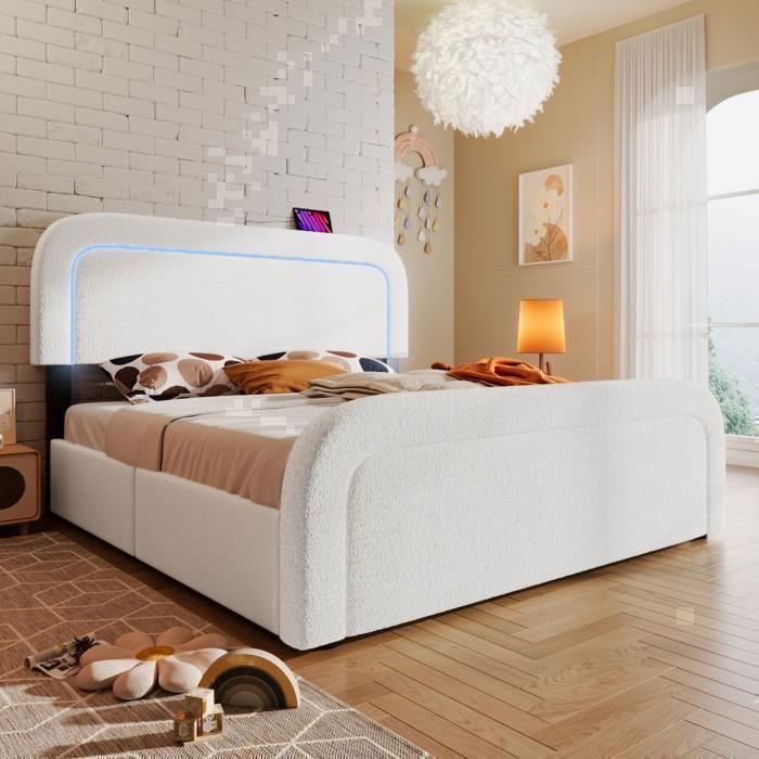 Sommier 140x200 Lit Coffre 160 X 200 Cm Avec Tête De Lit Rangement - USB - Tissu En Lin Beige 92185923 Lit Avec Sommier Lattes Intégré Charge 300kg Chaque prise est équipée de ports de charge conformes aux normes européennes et de ports USB, offrant une solution de charge pratique et efficace pour vos appareils électroniques. Lit coffre avec chargeur USB et LED - 160 x 200 cm - Beige - Sweiko Veuillez patienter avant de recevoir l’ensemble complet. Le panneau de tête rembourré allie style et fonctionnalité, fournissant un excellent soutien pour le dos et vous garantissant une nuit de sommeil agréable. 【Stabilité exceptionnelle】 : Un cadre en métal solide associé à des lattes en bois de qualité, avec une capacité de charge maximale de 300 kg, assure une stabilité optimale et une ventilation parfaite, empêchant l'accumulation d'humidité et prolongeant la durée de vie du matelas. Lit coffre 160 x 200 cm avec tête de lit LED, prise USB Type-C - Tissu C'est le choix idéal pour une utilisation quotidienne dans une famille. 【Panneau de tête avec ports USB/C】 : L'un des aspects les plus pratiques du panneau de tête est la présence d'une prise intégrée avec des ports USB/C, vous permettant de charger facilement vos smartphones et tablettes avant de dormir. 【Confort de soutien】 : Ce lit est fabriqué à partir d'un tissu de velours de haute qualité, durable et facile à entretenir, offrant un confort extrême. De plus, grâce à un système de levage double hydraulique, ce lit offre un espace de rangement généreux sous le matelas, idéal pour les petits appartements ou les logements avec peu d'espace, résolvant efficacement les problèmes d'espace dans les petits logements.