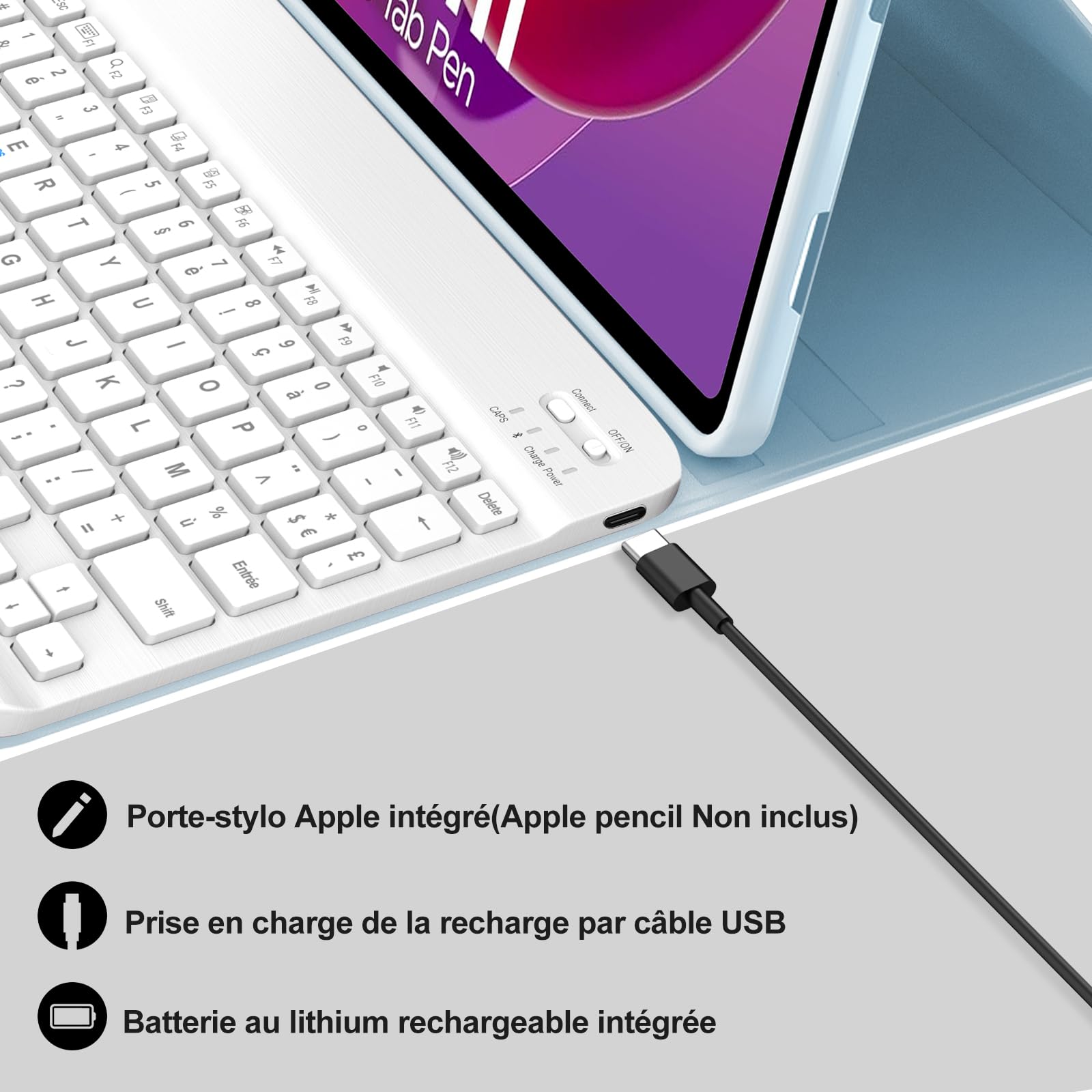 JADEMALL Étui Clavier avec pour Galaxy Tab S7 FE/ S7 Plus/ S8 Plus 12... L'étui de protection de haute qualité adopte une conception de dissipation thermique à l'intérieur, ce qui peut empêcher efficacement la tablette d'être utilisée trop longtemps et incapable de dissiper la chaleur. Coque Clavier pour Tab S6 Lite 10,4'' 2022-2020, AZERTY français Clavier Magnétique Azerty Étui FLOODKING Pour Lenovo Tab M11 , Clavier Bluetooth Avec Touchpad, Noir Clavier Lenovo Tab M11 L'arrière du clavier Tab m11 est magnétique, il est fixé magnétiquement à l'étui de protection. Assurance Qualité : La découpe de la coque pour Lenovo Tab M11 2024 11 pouces est découpée avec précision pour un accès parfait à tous les ports de connexion de la Tab M11., Si vous rencontrez des problèmes de qualité avec le produit lors de son utilisation, n'hésitez pas à nous contacter. Nous vous fournirons une solution satisfaisante. L'intérieur doux et antidérapant protège votre tablette des rayures. JADEMALL Étui clavier compatible avec Lenovo Tab M11 11 2024 (TB-330XU/330FU) Cette découpe de la coque est découpée avec précision pour un accès facile à toutes les connexions, caméras, haut-parleurs, prises casque et commandes de volume. Vous pouvez profiter jusqu'à 120 heures d'utilisation continue et 100 jours en veille. Clavier Magnétique Amovible : Le clavier pour Lenovo Tab M11 11 adopte un matériau ABS, un design ultra-fin, léger et facile à transporter. Emballage: 1 * étui noir pour Lenovo Tab M11 2024 11 1 * AZERTY clavier non rétroéclairé 1 * Câble de chargement du clavier 1 * Manuel d'instructions du clavier Remarque : si vous rencontrez des problèmes de qualité avec le produit lors de son utilisation, n'hésitez pas à nous contacter et nous le résoudrons pour vous garantir une expérience d'achat agréable dans notre magasin. Angle de Vue Réglable : La coque pour Lenovo Tab M11 dispose de trois rainures à l'intérieur, qui peuvent être ajustées à trois angles de vue confortables, idéales pour travailler et regarder des vidéos, etc. Il peut être facilement retiré lorsque le clavier n'est pas utilisé. Le clavier dispose d'une batterie Li-ion premium intégrée et d'un mode d'économie d'énergie.