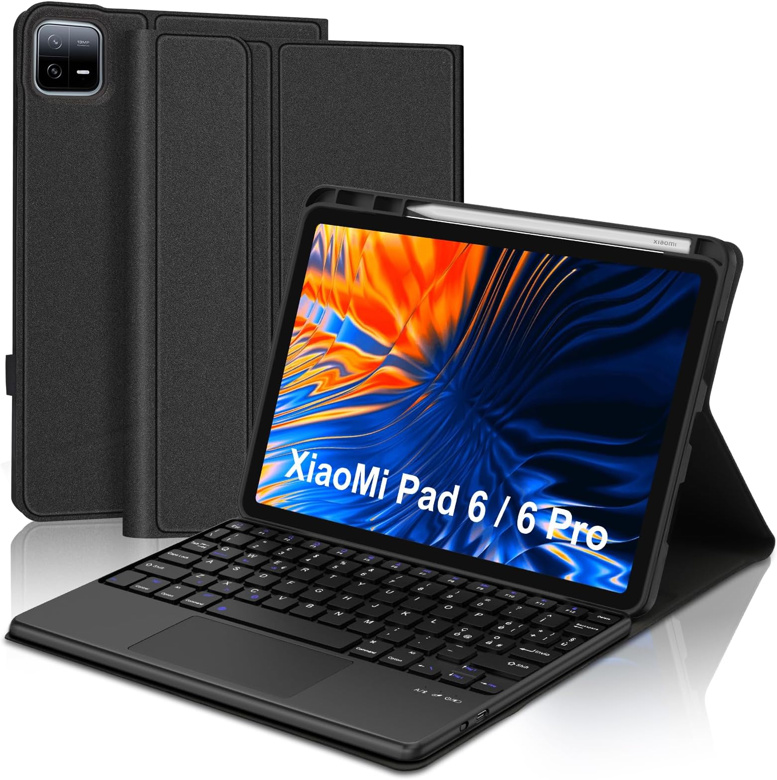 Clavier Touchpad Xiaomi Pad 6 Pro Azerty Rétroéclairé Clavier étui Pour Xiaomi Mi Pad 5-5 Pro 11 PoucesAZERTY Slim PU Housse AZERTY Français Bluetooth Idéal pour regarder des vidéos, travailler et lire des livres électroniques. Housse Clavier Pour Xiaomi Mi Pad 6-6 Pro Touchpad 7 Couleurs Rétro... JADEMALL Étui Clavier avec Touchpad pour Xiaomi Pad 6/6 Pro 11 2023., Le clavier a une batterie au lithium intégrée, qui est rechargeable et a une longue autonomie en veille. Compatibilité: L'étui clavier avec touchpad est compatible avec Xiaomi Pad 6/6 Pro 2023 11. Le clavier dispose de 7 couleurs de rétroéclairage réglables pour s'adapter à votre environnement de travail. Clavier Ipad Pro 11 - Étui Clavier Avec Touchpad Pour Ipad Air 5- Ipad Angle de Vision Réglable: Cet étui pour Xiaomi Pad 6/6 Pro dispose de trois rainures intégrées pour vous offrir un angle de vue confortable, vous permettant d'ajuster l'angle de la tablette à votre goût, parfait pour écrire et regarder des vidéos. Cet étui à clavier pour Xiaomi Pad 6 dispose de trois dispositifs de réglage d'angle antidérapants intégrés, ce qui vous permet de trouver facilement la meilleure position pour vous. Emballage : 1x Coque pour Xiaomi Pad 6/6 Pro 1x AZERTY Clavier Rétroéclairé Bluetooth avec pavé tactile 1x Câble de charge USB (chargeur non inclus) 1x Manuel d'utilisation Trackpad rapide et réactif pour un accès facile à toutes les pages Web et fonctions sans avoir besoin d'une souris Le clavier peut être déplacé librement ou peut être utilisé seul comme clavier pour d'autres appareils électroniques compatibles Bluetooth tels que les téléviseurs intelligents, les téléphones mobiles, les livres électroniques et les tablettes.