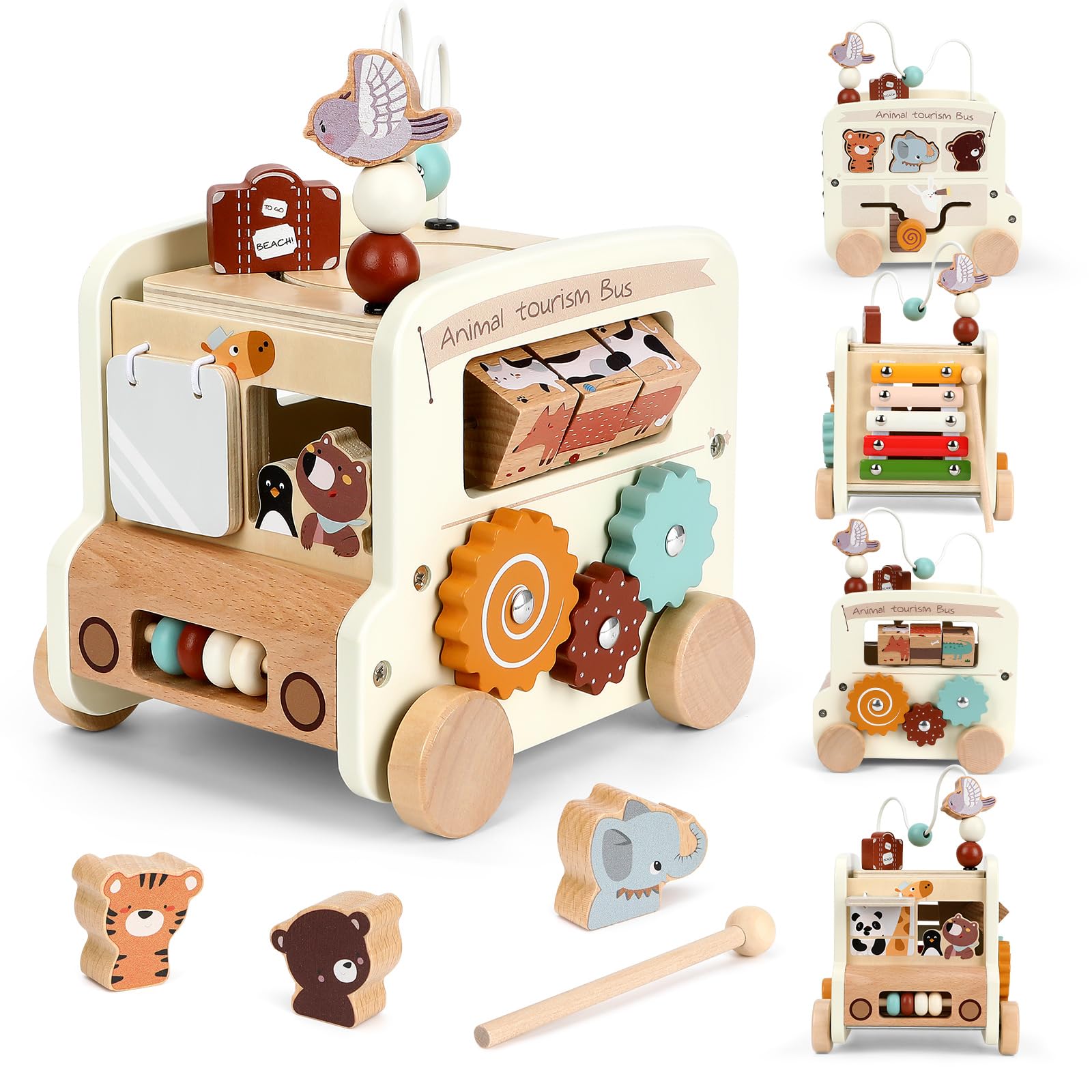 Cadeaux parfaits pour les garçons et les filles de 2, 3, 4, 5 ans, pour un anniversaire, Noël, Halloween. Cube de motricité Arctic - small foot - les jouets en bois Cube de motricité Baleine jouet en bois 12 mois La partie supérieure amovible du cube peut être jouée séparément et s'adapte parfaitement à la boîte, ce qui rend le jouet en bois confortable à transporter et est idéal comme jouet de voyage. Les roues permettent aux bébés de déplacer facilement le jouet de bus et tigres, éléphants, Transportez les oiseaux et autres passagers où ils le souhaitent. Cube d'éveil Montessori pour enfant sur CADEAU IDÉAL POUR LES PETITS ENFANTS : si vous êtes à la recherche de cadeaux pour bébés garçons et filles pour les tout-petits, nos jouets éducatifs éducatifs sont les plus attrayants pour les enfants. Cube d'activité en bois 9 en 1 : le jouet en bois est conçu en forme de bus rouge et combine 9 activités différentes en une : bus jouet, xylophone bébé, roues dentées rotatives, labyrinthe de perles, trieur de formes d'animaux, blocs rotatifs, boulier coloré, labyrinthe assorti et fenêtre active. Cube Activité Bois Bébé Cube De Motricité En Bois 6 En 1 Montessori Jouet éducatif Pour Bébé à Cube D'activité Bois Bébé