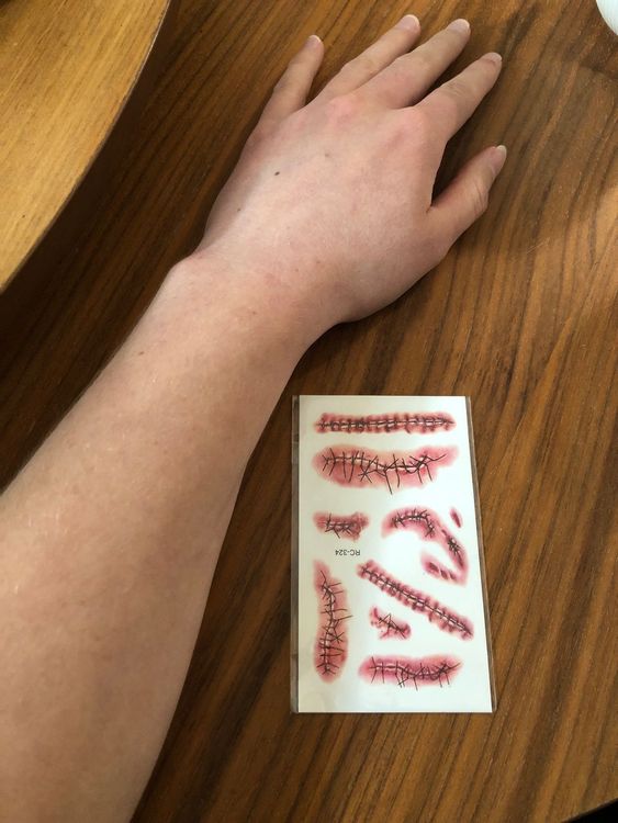 Transformez-vous en quelques secondes avec notre lot de 33 tatouages temporaires de blessures, cicatrices et ecchymoses. Que ce soit pour Halloween, une soirée déguisée ou pour surprendre vos amis, ces tatouages vous permettent de changer de look rapidement et sans effort (L'eau chaude fonctionnera mieux)., 4., Après avoir pressé 20-30 secondes, retirez délicatement le papier de support, puis vous obtiendrez un beau tatouage ! Generic 10 feuilles Fausses cicatrices d'Halloween Tatouages temporaires autocollants - Autocollants de blessures réalistes d'horreur pour le corps et le visage - Parfait pour les bals masqués, les blagues, le cosplay et Les couleurs peuvent varier selon l’écran utilisé. Pack de 36 tatouages pour Halloween – Contient 30 feuilles de tatouages cicatrices Halloween et 6 feuilles de veines sanglantes autocollantes, soit plus de 230 motifs pour une transformation terrifiante. Utilisation libre sur tout le corps – Combinez les tatouages faux sang, blessures, et effets zombie sur le visage, le cou ou les bras selon vos envies – pour enfants et adultes. Motifs de cicatrices réalistes : avec 30 motifs de cicatrices réalistes, les tatouages temporaires d'Halloween sont parfaits pour jouer le rôle de zombie, sorcière, vampire, personne blessée, monstre, etc. Facile à utiliser 30pcs Ensemble De Tatouages Temporaires D'halloween - Fausses N’hésitez pas à nous contacter pour toute question., Mode d'emploi 1., Choisissez le motif que vous préférez et découpez-le, retirez délicatement le film transparent., 2., Placez le motif face contre la peau., 3., Mouillez le tatouage avec de l'eau jusqu'à ce qu'il soit complètement imprégné. Avertissement De Sûreté keep away from fire Votre satisfaction est notre priorité.
