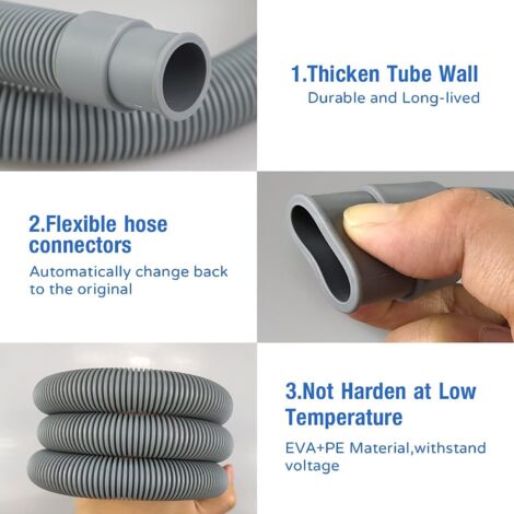 Kit Drainage Avec Pince Sécurisée Tuyau Clim Tuyau De Vidange Flexible En TPE Pour Un Drainage Efficace De L'eau Tuyau Climatiseur Mobile Beko Tuyau Machine A Laver 2m Le matériau robuste maintient son intégrité dans les variations de température pour une performance fiable toute l'année. Zerone tuyau de vidange de lavabo 2pcs bassin tuyau de vidange lavabo... Tuyau de vidange flexible avec rallonge - Test et Avis Son design adaptable fonctionne avec plusieurs marques et modèles, vous donnant une flexibilité dans vos options de configuration. Les composants conviviaux permettent une installation à faire soi-même sans l'aide d'un professionnel ou d'outils spéciaux. Machine À Laver Vidange Tuyau De Vidange Flexible Tuyau D'Eau Joint Construction TPE de qualité supérieure : fabriqué à partir d'élastomère thermoplastique (TPE) de haute qualité, ce tuyau de vidange durable résiste aux fissures, aux fissures et à la détérioration, même avec une exposition constante à l'eau. Caractéristiques : * Application polyvalente : ce tuyau de vidange de climatiseur est conçu pour de multiples utilisations, y compris les climatiseurs, les déshumidificateurs et les machines à laver, offrant une flexibilité pour répondre efficacement à vos besoins de drainage. Caractéristiques : * Nom du produit : tuyau de vidange pour climatiseur., *Matériau : TPE. Compatibilité polyvalente : conçu pour les climatiseurs, les déshumidificateurs et les machines à laver, ce tuyau de drainage offre une fonctionnalité polyvalente pour répondre à divers besoins d'évacuation d'eau dans les appareils ménagers. * Taille L : 1 m, 1,5 m, 2 m, 3 mètres, 4 m, 5 m, 6 m, 8 m, 10 m (en option)., Couleur : blanc. Configurez-le selon vos besoins spécifiques sans vous soucier des plis ou des restrictions qui pourraient entraver l'écoulement de l'eau et provoquer des sauvegardes. Installation flexible : le matériau TPE hautement flexible permet à ce tuyau de vidange de naviguer dans les coins et dans les espaces restreints avec facilité. * Design flexible : le tuyau de drainage flexible permet une installation facile dans les espaces restreints, s'adaptant à différentes configurations tout en maintenant une connexion sécurisée sans fuites.