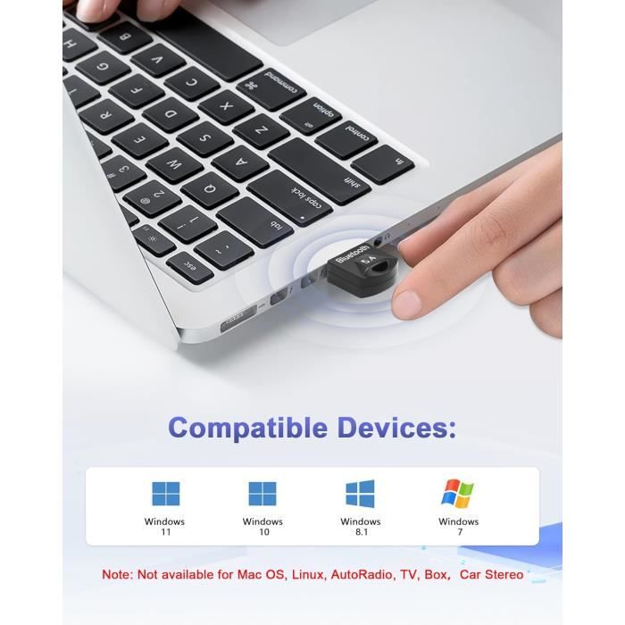 【Adaptateur bluetooth 】Forte compatibilité, il prend en charge Windows 8., 1/10/11 sans pilote (branchez et connectez). Il est hautement compatible et prend en charge Windows 8., 1/10/11 sans pilote. Comparé au Bluetooth traditionnel, il offre une perte de transmission plus faible et un son plus clair. Le voyant arrière s'allume pendant le fonctionnement. Après le premier appairage, la connexion se fait automatiquement à la mise sous tension, sans réinitialisation, pour une expérience simple et pratique. Adaptateur Bluetooth Dongle Bluetooth 5.4, 5.4,Cle Bluetooth Pour Il peut recevoir et transmettre simultanément du son pour une expérience fluide avec d'autres logiciels 【Fonction mémoire, connexion facile】Cet adaptateur Bluetooth USB est doté d'une fonction mémoire. Clé Bluetooth 5.3 Pour Pc Laptop, Adaptateur Dongle Bluetooth Supporte... Office Depot Dongle Bluetooth Adaptateur USB Bluetooth 5.4 150 M Pour Windows 11/10/8.1 How Much Is A Bluetooth Pour Pc Bureau Portable La puce améliorée offre une meilleure résolution audio, vous permettant de profiter d'un son haute fidélité et délicat pour la musique et les films via la connexion Bluetooth Il se connecte par simple branchement. Dongle Bluetooth 5.1,Adaptateur Bluetooth pour PC - Informatique Windows 7 nécessite l'installation d'un pilote. 【Clé bluetooth】Cet adaptateur Bluetooth dispose d'une antenne intégrée à forte pénétration du signal, permettant une transmission sans entrave jusqu'à 20 mètres. Matériau : ABS La puce améliorée de cet adaptateur Bluetooth offre une meilleure résolution audio, vous permettant de profiter d'un son haute fidélité et délicat pour la musique et les films via la connexion Bluetooth. Par exemple, des enceintes, claviers, écouteurs, souris et imprimantes Bluetooth.
