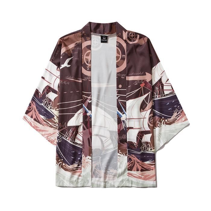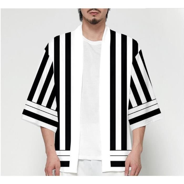 Ce haori japonais traditionnel pour est fabriqué dans un tissu de haute qualité, agréable à porter. Ce cardigan kimono unisexe ouvert sur le devant est un cadeau parfait pour les hommes, petit ami, mari, père, fils, frère, amis vous-même. Notre tenue kimono de samouraï est idéale pour maison, au quotidien, en peignoir, pyjama, spa, streetwear, fête, cosplay, plage, costume de festival, rendez-vous, barbecue, bar, plein air, vacances, performance sur scène. Chemise japonaise KoiGuchi Samourai Kamon Sengoku Jidai noir Veste kimono peut s'associer à différents de vêtements : t-shirts, shorts pantalons. Lsland Wave Style Camisa Tipo Kimono de Verano Hombre Veste Haori été Manches Moyennes Lsland Wave Style Été Kimono Chemise Hommes À Manches Moyennes Chemise Manteau Japonais Chemise - W001808 - Kimono Long Brodé - Manches Chauve-Souris...