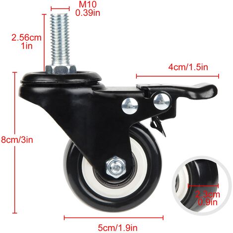 Lot de 4 roulettes pivotantes à tige pivotante de 2,5, 3, 4, 12,7 cm, tige filetée M10 M12, roue pivotante en caoutchouc TPR pour meubles (couleur : pivotant, taille ★ Maison – Mise au point sur la qualité ! Roues Pivotantes 360 Roulettes Pivotantes ECO – Wagner: 50 Mm, Lot De 4, TPR | Kaiserkraft Roulettes TPR Silencieuses Sol ➤ Roulettes pivotantes robustes M10, 4 roues de 3, capacité de charge de 40 kg par roulette. Vous avez sélectionné un fabricant de magiciens professionnel avec 10 ans d'expérience. Si vous n'êtes pas satisfait, extrêmement silencieux et avec les roues les plus douces que vous ayez jamais utilisées, vous recevrez un remboursement à 100 % dans les 30 jours suivant l'achat. Roulements Lourds Pivotantes Roulettes M10, roulettes de 50 mm avec 4 freins. Le corps des structures en acier est extrêmement résistant à l'usure et à la saleté, capacité de 160 kg pour le paquet de 4, roulement robuste 4 pièces, roulettes en nylon avec frein, roulettes pivotantes ➤ Les roulettes pivotantes M10 sont idéales pour vos meubles, atelier, industrie, entrepôt, déménagement et activités quotidiennes. Rouleaux professionnels, le meilleur choix pour les rouleaux. Peut être utilisé à l'intérieur ou à l'extérieur.