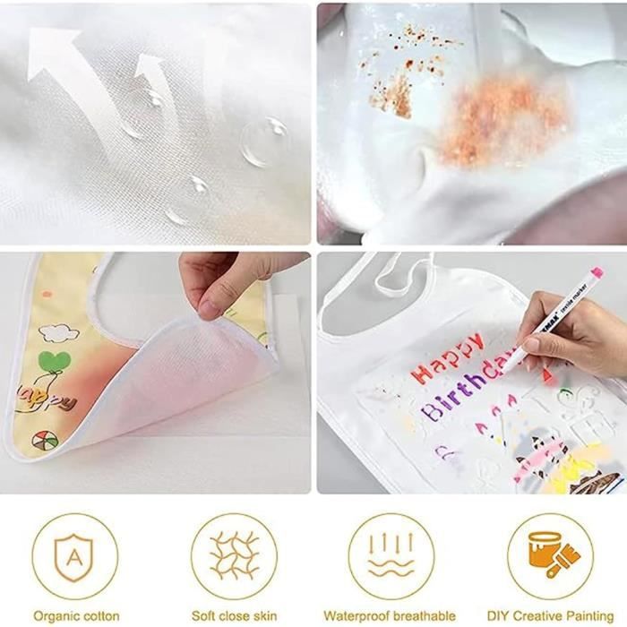 Idéal pour les cadeaux d'anniversaire ou les cadeaux pour la famille et les amis, le bavoirs bebe offre un grand nombre de cadeaux créatifs, amusants et uniques pour les cadeaux de bébé, le matériau est doux et agréable pour la peau, ce qui le rend plus confortable à porter pour le bébé. Bavoirs Bébé Imperméable YOSOO - Tablier Peinture Enfant - Purple VENDU - Trio d'anciens bavoirs blancs pour poupon ou bébé - Le Grenier de Lisette En cas de nettoyage, ne pas frotter trop fort. Lorsque votre dessin est terminé, il est recommandé de le repasser à l'aide d'un fer à repasser et le bavoirs bebe doit être laissé au repos pendant 24 heures avant d'être utilisé. Tablier Bébé Peinture Bavoirs Cantine Maternelle Blouse De Fille Manche Longue Etanche Enfant 1... Le bavoir bebe se glisse dans une poche ou un sac à main pour que votre enfant reste propre et bien rangé à la maison ou en voyage. Le set bavoir bebe contient 6 bavoirs, 8 stylos textiles colorés et 3 gabarits de dessin. Bavoir Coton Blanc NJCXOLA 6 Pcs Bavoirs Pour Peinture, Bavoirs Blancs Pour Bébé Bavoir Peinture Bébé