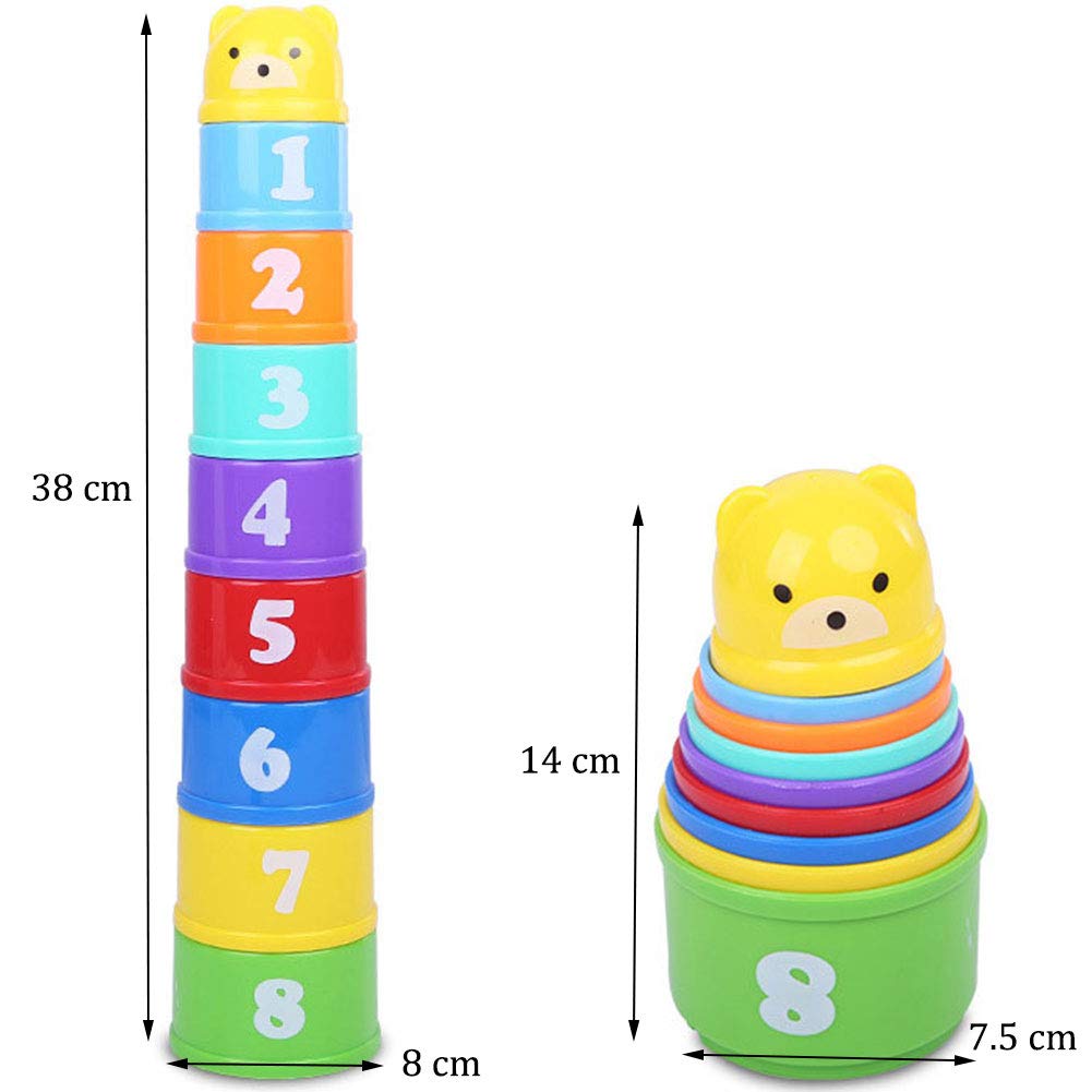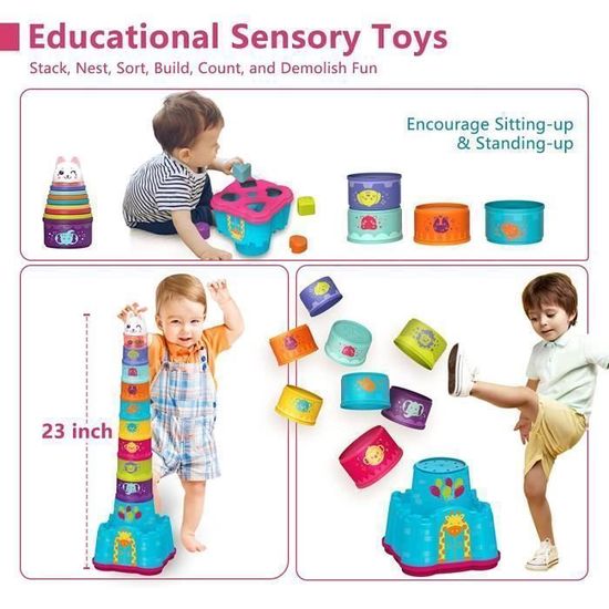 Texture adhérente et facile à saisir : les pierres empilables pour bébé ont des structures en relief pour une meilleure prise en main et favorisent le développement sensoriel. 100 % silicone de qualité alimentaire : les gobelets empilables pour bébé sont inodores, sûrs et durables, parfaits pour les bébés à partir de 3 mois. 9 tailles différentes et couleurs vives : les gobelets empilables inspirés favorisent la motricité et éveillent la curiosité de votre enfant avec des motifs vifs. Taicols Lot de 9 gobelets epilables en fore de lapin avec 1 balle de... Textures Soulagement Dentition Bébé Jeu Eveil 12 Mois Gobelets Empilables Bébé - Lot 8 Pièces - Jouet éducatif 6 Mois+ - Arc-en-ciel Gobelets Empilables éducatifs Gobelets Silicone Qualité Alimentaire Lavable Jouet Bebe 6 Mois 8 Gobelets Empilables Bébé Zhuoyou - Jouet D Design apaisant d'anneau de dentition : différentes textures et formes offrent un soulagement de la dentition, parfait comme tour empilable à partir de 1 an.