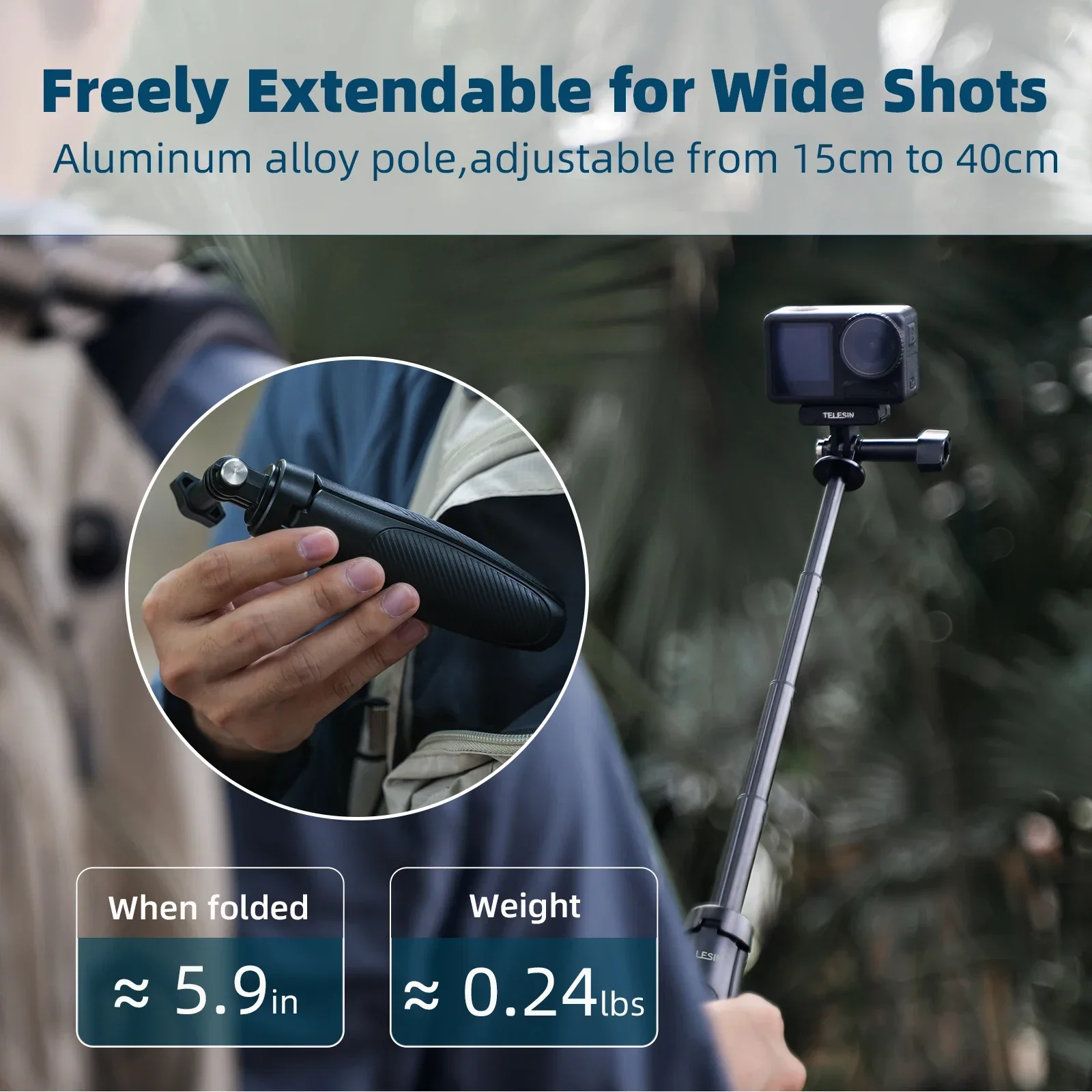 **🏄【Un confort qui dure des heures】Poignée ergonomique anti-transpiration** Dites adieu aux crampes aux mains ! GoPro HERO 13 (Fecha de lanzamiento, rumores SECRETOS, precio Avis (0 avis)TELESIN° 120cm/ 47.83" Perche à Selfie pour GoPro Hero 13 12 11 10 9, DJI Osmo Action 5 Pro 4 3, Insta360 X5 X4 X3 Ace Pro, Trép127 Ce produit n’est toujours pas évalué Puis-je l'utiliser pour une prise de vue POV en mains libres ? Absolument! **🔒【Prise de vue sans tremblement, à chaque fois】Technologie de double verrouillage + portée ultra-stable** Des vidéos tremblantes ? Plus jamais ! Le support de poignée ergonomique assure une stabilité totale du corps. Cela le rend idéal pour le vlogging, la randonnée ou les photos de groupe. Comprend une boîte de couleur, une perche à selfie, une vis de verrouillage, un douille de trépied 1/4 avec fixation rapide. Description du produit Perche à Selfie TELESIN° : Stable pour les Prises de vue en Action Accessoire Sport Aventure étanche TELESIN Trépied Perche à Selfie Flottant Pour GoPro Hero13 12 11 10 9 8 7 DJI OSMO Action 5 Pro 4 3 Insta360 Poignée étanche Trépied Télescopique Action Cam Pour la prise de vue POV, fixez simplement la caméra au clip avant et montez-la sur un support de moto ou un autre trépied. Vamson-Support de perche à selfie réglable,pince de support de vélo... **✨【Déverrouillez la liberté mains libres】Compatible avec TOUTES les caméras d'action** Capturez des vagues sauvages, des pentes enneigées ou des foules de festivals sans regrets tremblants ! **👑【Voyagez plus intelligemment, voyagez plus léger】Kit d'aventure tout-en-un** Emportez et partez ! Quelle est la longueur maximale du mât télescopique ? Le poteau dispose de 3 longueurs d'extension, allant de 9,33 à 35,2/47,83/59 (23 cm - 90/120/150 cm). Ce bâton à selfie dispose-t-il d'un support de trépied intégré ? Non, mais il y a un adaptateur 1/4 en bas pour fixer des accessoires de trépied supplémentaires. De la sueur ? De la pluie ? Essuyez simplement et continuez à photographier – votre confort ne s'arrête jamais. Notre système de double verrouillage renforcé (avant + arrière) maintient votre appareil photo solide comme un roc à n'importe quelle hauteur. FrançaisLa poignée en silicone reste stable même avec des gants mouillés – pas de glissement, pas de rouille, juste des séquences épiques. Les bâtons à selfie sont-ils compatibles avec les modèles de caméras d'action courants ? Notre perche à selfie est compatible avec GoPro Hero 13/12/11/10/9/8/7/6/5 Session, GoPro Max Mini, Insta360 X4/X3 GO et DJI Osmo Action 2/3/4/5 Pro, Osmo Pocket 3/2., Comment monter la caméra sur un poteau ? Pour verrouiller, il suffit de serrer le bouton.