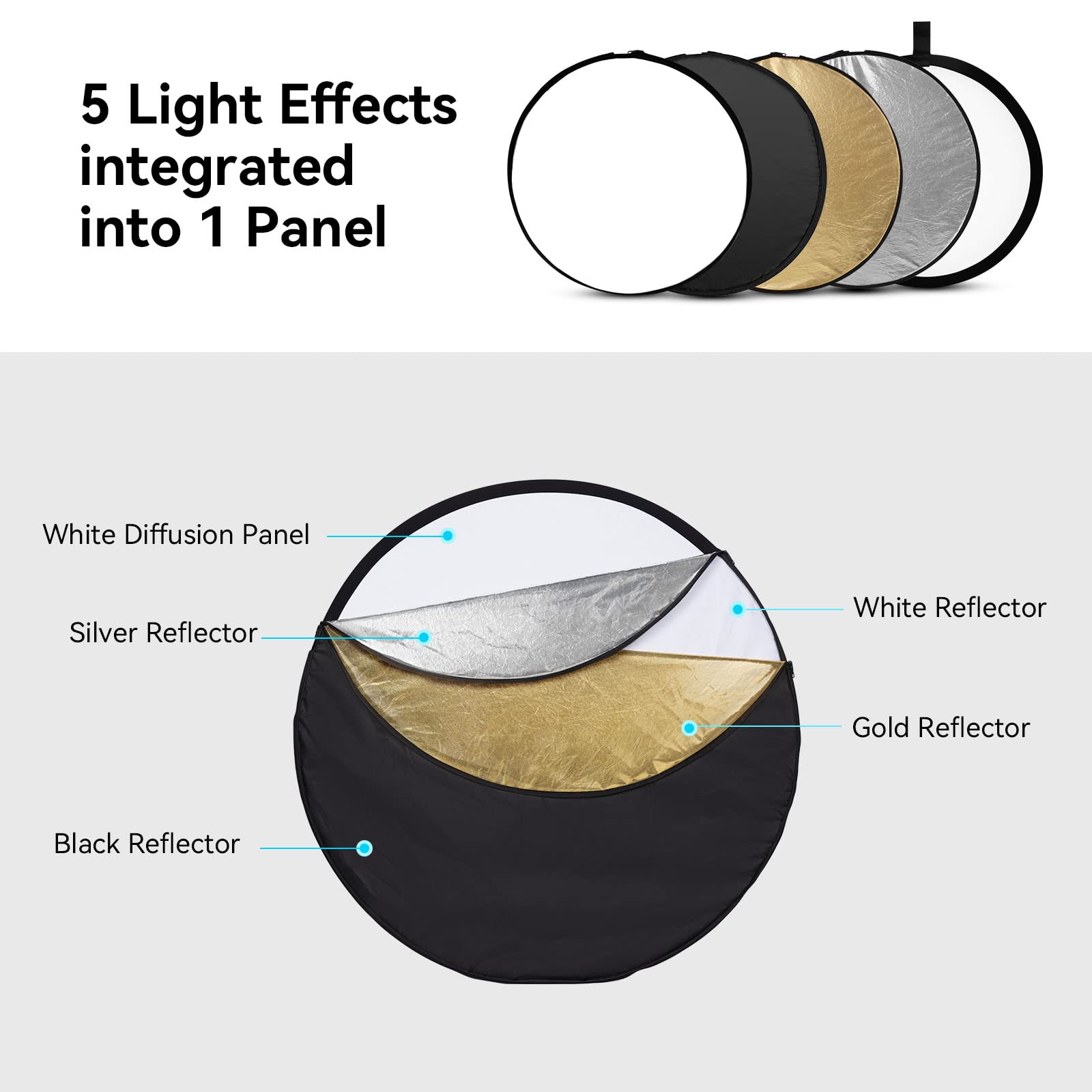 Lumiere Photo 5 En 1 Photographie Portable, Réflecteur De Lumière, Réflecteur De Photographie, Réflecteur Portable, Réflecteur De Lumière Multi Disque Rond Pliable Pour Studio Toute Situation (5 Couleurs Studio Photo AMBITFUL Réflecteur Rond 2 en 1 de 30 cm, doré, argenté, Blanc, 30 cm Réflecteur de lumière pliable 5 en 1, 60x90cm, 24x35 pouces, pour...