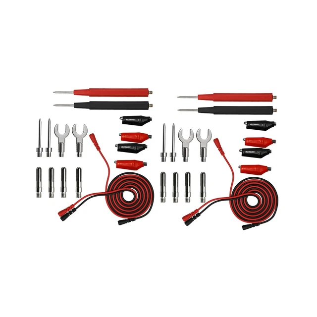 Trust-Câble de test Cordons de test P14A 4 mm avec kit de clips Accessoires de ligne de test Nettoyant Contact Electrique Proster Kit De Fils De Test Pour Multimètre – 24 En 1 Fils De Test Automobile Avec 8 Broches De Sonde, Pinces Crocodile, Fiche Banane Pour Multimètre Câbles Mesure électrique Sondes Dorées Contenu Complet du kit : Ce kit regroupe tous les accessoires essentiels pour tester: Stylo-test multimètre * 2, Câble de test * 2,Pince crocodile * 4, Sonde 1mm * 4, Sonde 4mm * 2, Sonde 2mm * 2, Clé * 1,Prise banane dorée * 4, Crochet de test * 2,Sonde avec gaine * 2, Insert U * 2 Caractéristiques du Produit Catégorie de produit : Kit de câbles de test pour multimètre (27 pièces) Dimensions d'emballage : 24,2 × 16 × 2,3 cm Poids net : 0,202 kg Poids brut : 0,257 kg Fonction du produit : Test électrique Contenu de l'emballage Stylo-test multimètre * 2, Câble de test * 2, Pince crocodile * 4, Sonde 1mm * 4, Sonde 4mm * 2, Sonde 2mm * 2, Clé * 1 Associées à plusieurs diamètres de sondes (1mm, 2mm, 4mm), adapter à de nombreux scénarios exigeants pour des tests encore plus précis. Cordons De Test Pour Multimètre[u211] - Bricolage Sécurisé et durable: Prises banane équipées de têtes isolées rouges pour une utilisation plus sûre(CATIII 1000V). KIT cordons de mesure – ELECTRO PJP Sondes dorées au placage, traitement surface premium qui garantit des performances stables et une longévité supérieure Précision élevée et Pratique: Les sondes sont entièrement traitées avec un procédé de dorure, ce qui réduit l'oxydation, améliore la fiabilité du contact et garantit ainsi la précision des résultats de mesure.