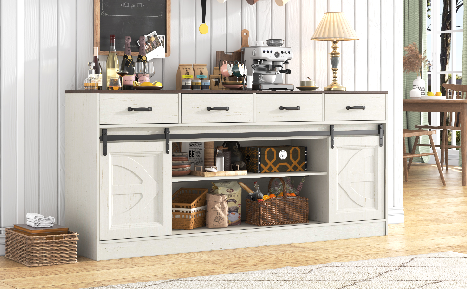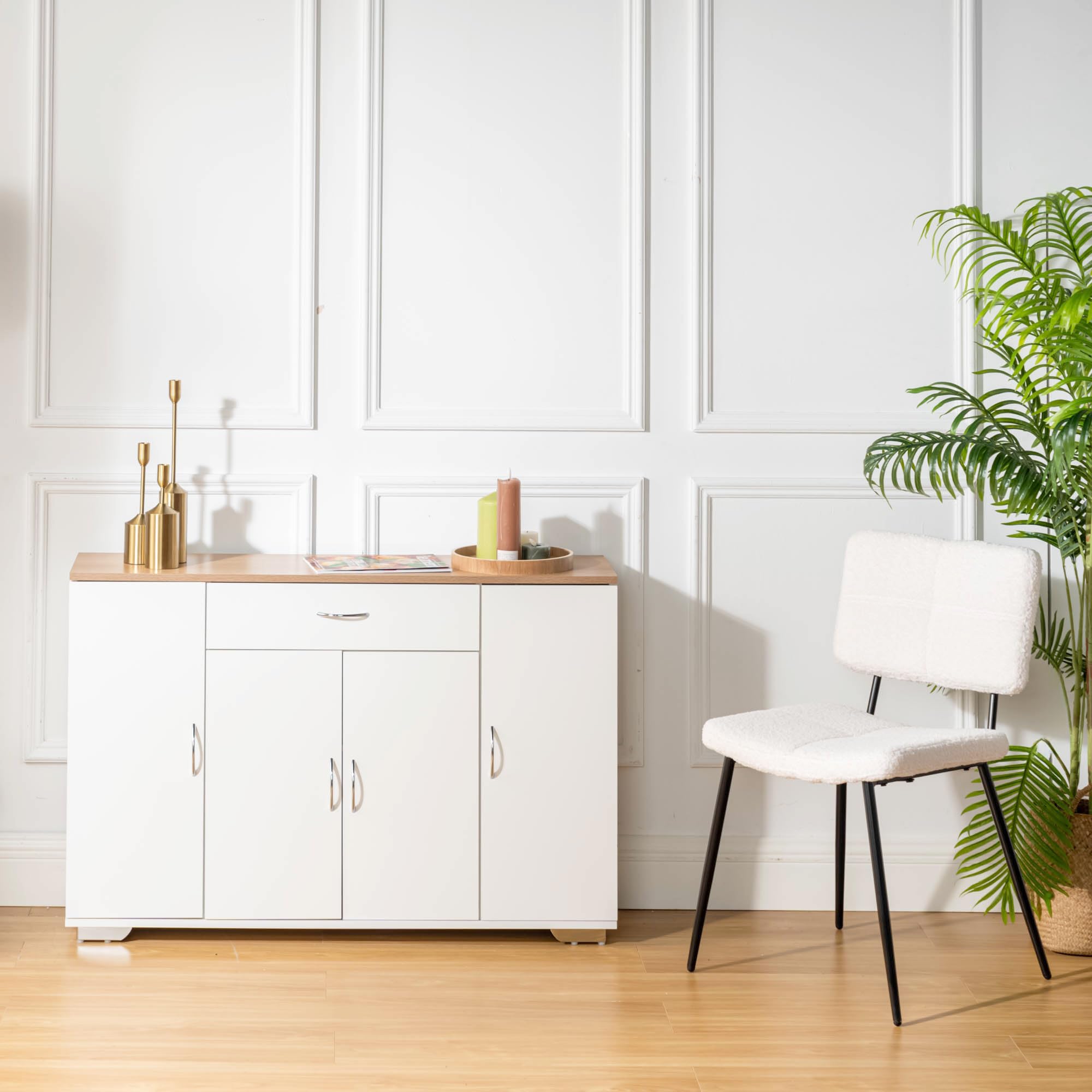 Metall Wohn möbel lange niedrige Side board Tisch Beistell tisch TV-Ständer Schr étagère Salon Décorative FurnitureR Salon Multi-Storage Unit, Sideboard, Kitchen Cabinet Meuble Rangement Salon 【Adaptable to Various Spaces】: Designed to fit seamlessly in living rooms, entrance areas, or any lounge space, this unit offers both style and functionality, making it a versatile piece for any home. FurnitureR Salon Multi-Storage Unit, Sideboard, Kitchen Cabinet, Cupboard with 4 Doors 1 Drawer, Large Shelf Space for Living Room, Entrance, Meubles de Rangement pour Salon Wood Top,118 x 30 x 70cm 【Generous Shelf Space】: The large shelf space is perfect for displaying decorative items, art, or photos, enhancing the visual appeal of your living room or entrance area.