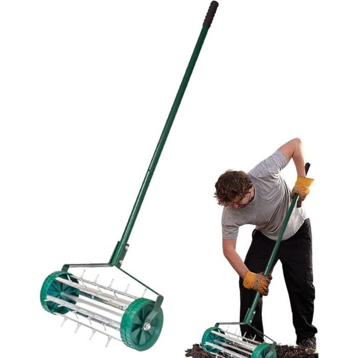 Et les 3 dents fonctionnent en même temps, ce qui peut grandement améliorer l'efficacité du travail et vous faire gagner du temps et des efforts. Il maintient votre pelouse aérée et lui insuffle une nouvelle vie. Piquets en acier : 9 cm. Technologie anti-obstruction : cet aérateur de jardin élimine efficacement les bouchons de terre tout en empêchant les blocages lors de l'utilisation, créant des trous plus grands et plus profonds pour l'absorption de l'eau et la croissance des racines, ce qui en fait un excellent choix pour les amateurs de jardin Matériau : Acier inoxydable., Dimensions : 24,9 x 94 cm. Installation simple : l'aérateur de sol est conçu pour une commodité ultime et dispose de tous les outils nécessaires pour une installation rapide. L'aérateur de pelouse à pointes a moins d'impact sur la santé de votre pelouse. L'aération du piquet est idéale pour les pelouses qui ne sont pas mal compactées Aérateur à Gazon Roulant de 46 cm Scarificateur Manuel à Pointes Dents creuses » Journées du patrimoine à Saint Laurent des Arbres... Aérateur de carottage de pelouse à haute efficacité : design à 3 dents tranchantes, ce qui rend l'aérateur beaucoup plus facile à insérer dans le sol. (Remarque : si votre sol est dur et sec, arrosez-la d'abord pour une efficacité optimale., ) Aérateur Pour Pelouse SENVERT Aérateur De Pelouse Roulant, Outil D'aération à Piquet Robuste Jusqu'à 25 Kg, Aérateur Rotatif Manuel Pour Jardin Et Cour Aérateur Pelouse Manuel 2 En 1 Aérateur à piquets : Percez des trous dans le sol autour des plantes pour faciliter l'échange d'oxygène et la fertilisation des racines, ainsi que l'irrigation et la pénétration de l'eau. Rendez votre pelouse plus verte et plus saine : cet aérateur de pelouse de jardinage dispose de 3 pointes pointues plus longues, 9 cm de long, permettant à votre aération de fonctionner beaucoup plus facilement. Description du produit Notre aérateur de pelouse, conçu pour retirer les carottes de terre, permet de déboucher le sol lors de l'aération du jardin et d'empêcher le dessèchement et le durcissement des carottes restantes. Confort ergonomique : 93 cm de long pour ne pas se plier avec poignée en « T ».