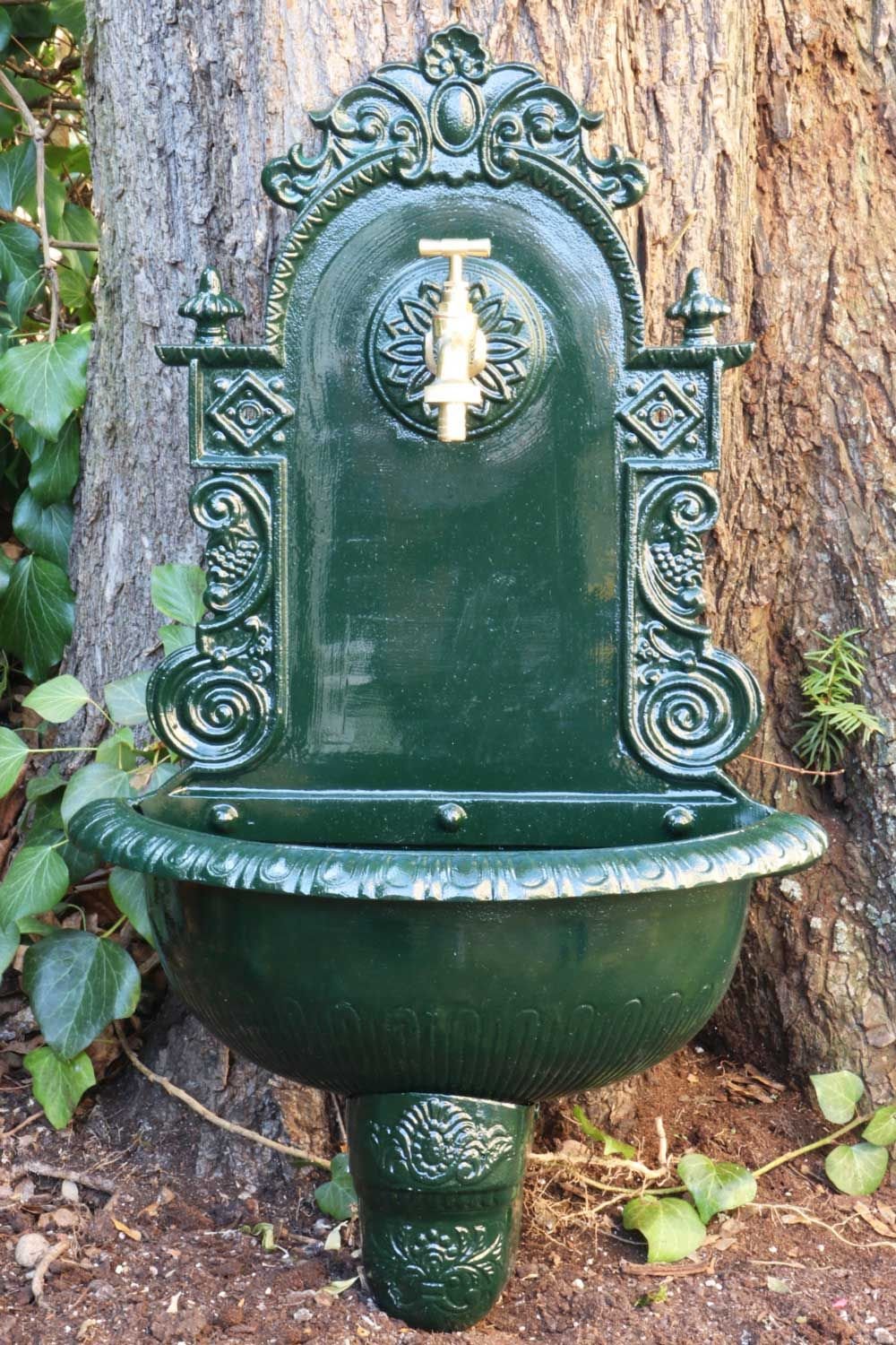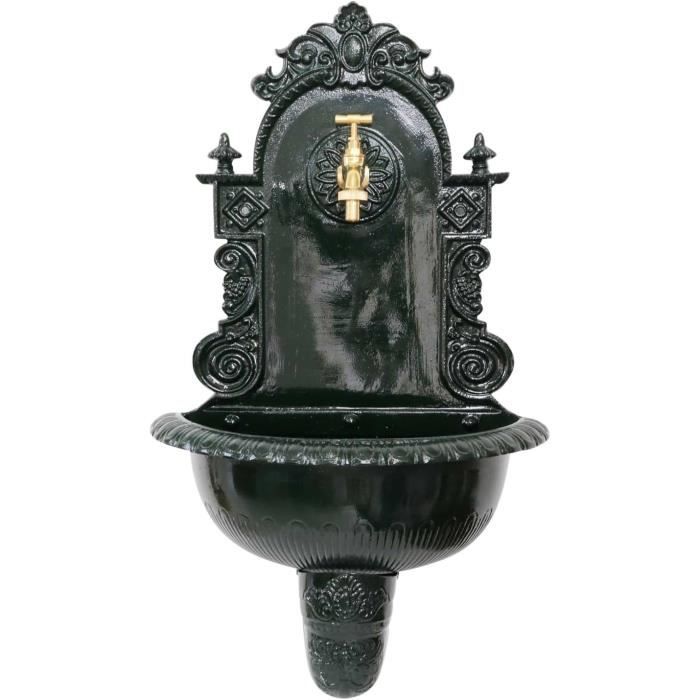 Sur les côtés, vous trouverez 4 trous permettant de fixer la fontaine à un mur. Dimensions: 44 x 72 x 22cm (L x H x P) , Materiau: Aluminium / Laiton , Style: Style antique Fontaine murale de style rural | Fontaine de jardin avec bac ancien Le robinet est compris dans l, offre. Le diamètre intérieur du tuyau à l, arrière du robinet est de 21mm (3/4 pouces). Fontaine d'Eau Murale Ovada pour Jardin en Acier Anthracite avec La distance entre le raccord du robinet et le sol est de 55 cm. Un article décoratif de grande valeur conçu dans un style ancien, comme vous pouvez le constater sur les photos. Fontaine Décoration Extérieure 72x44x22cm Fontaine Murale De Style Provençal ǀ Fontaine Pour Jardin En Pierre Style Ancien Avec Vasque Noire
