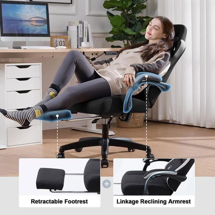 🍃Garantie de qualité des matériaux : La chaise de bureau utilise un cadre métallique intégré, un revêtement en cuir PU de haute qualité, résistant à la rouille et durable, et a passé la certification SGS du vérin à gaz, ce qui est notre garantie de la qualité et de la sécurité du produit. La GTPlayer Chaise Gaming est conçue pour offrir un soutien optimal, un design captivant et une ergonomie adaptée aux besoins des gamers passionnés, professionnels et même occasionnels 1 ÉTÉ 2 HIVER Conçue pour résister aux sessions de jeu les plus intenses, elle est la forteresse la plus stable et la plus fiable, plus stable que les autres marques. De plus, nous offrons un service après-vente de haute qualité, y compris un service de retour inconditionnel de 30 jours et un service de remplacement ou de réparation de pièces de 24 mois. 😻Montage et service après-vente : Des instructions compréhensibles garantissent une installation rapide. Accoudoir à liaison Soutien solide du poignet au coude avec l'inclinaison du dossier, soulageant la pression du corps. GTPLAYER Chaise Gaming avec Repose-pied Haut-parleur Bluetooth et ❤Chaise Ergonomique : Le coussin de cette chaise d'ordinateur est doux et supportant, utilisant du coton moulé avancé et du coton naturel, qui sont sûrs et respectueux de l'environnement et réduisent la plupart des signes de fatigue. Housse en cuir amovible Chaud en hiver et frais en été, adapté à la fois aux temps froids et chauds. 👍Housse de dossier amovible : La housse en cuir amovible de la chaise gaming GTPLAYER peut être ajustée selon vos préférences, créant ainsi un environnement de jeu ou de travail confortable. Chaise de jeu Fauteuil Gamer Chaise Gaming Ergonomique Chaise de bureau... Chaise Ergonomique Gaming GTPLAYER , Chaise Gamer, Chaise De Bureau Ergonomique Réglable En Hauteur, Utilisable En Hiver Et En Été, Avec Dossier Double, Repose-Pieds, Housse Amovible Et Support Lombaire Noir Chaise Gaming Oreiller amovible Appuie-tête protecteur de la nuque, large coussin lombaire pour un confort durable et une assise prolongée.