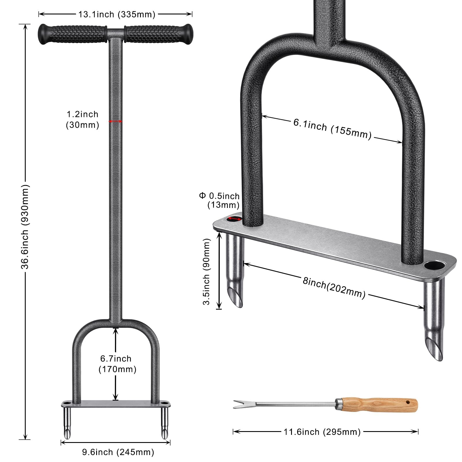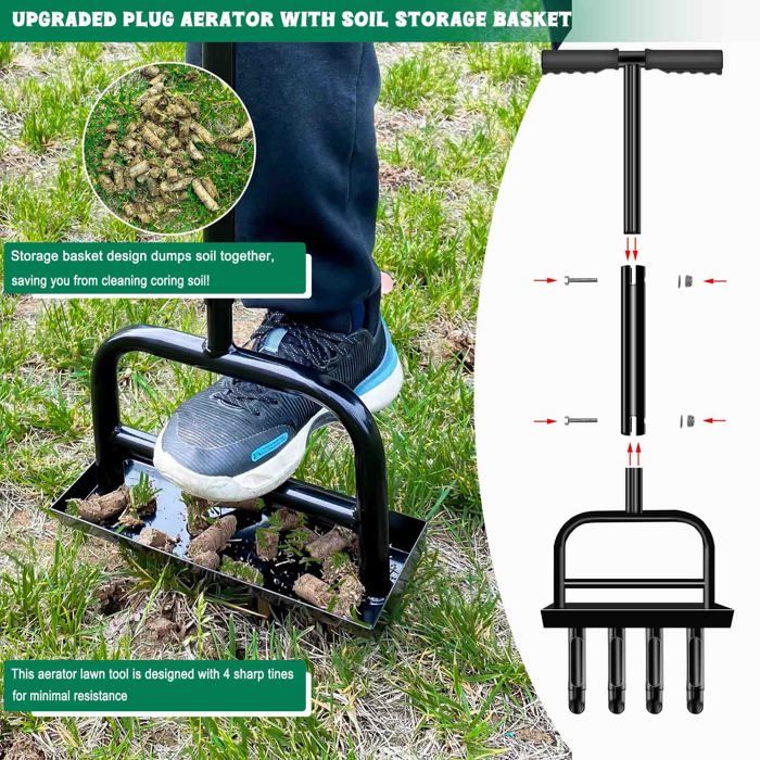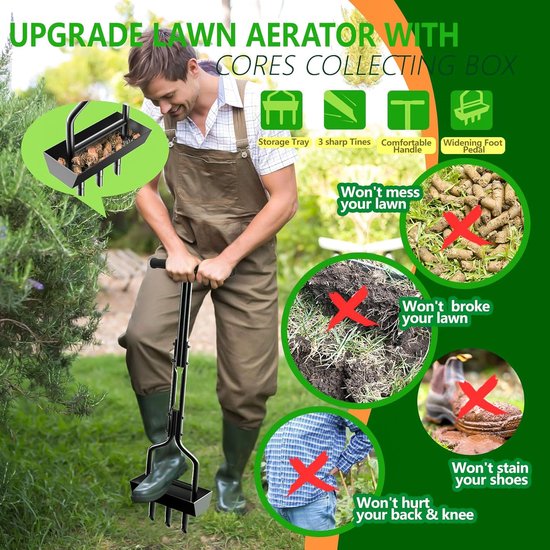 L'intérieur épaissi et la forme en U assurent une résistance supplémentaire. Les aérateurs de pelouse manuels contribuent à ameublir le sol, ce qui permet à l'air, à l'eau et aux nutriments de circuler vers les racines de l'herbe, pour une pelouse plus vivante, plus verte et plus saine 【Une aération Plus Efficace】Les aérateurs de gazon aident à ameublir le sol, ce qui permet aux nutriments et à l'eau d'atteindre plus facilement les racines, améliorant et préservant ainsi la santé du gazon. 【Facile à Installer】L'aérateur de pelouse est livré avec tous les outils nécessaires. Pour obtenir de meilleurs résultats, la nature du sol est également importante. Aucune étape d'installation fastidieuse n'est nécessaire. Le plateau intégré permet au sol de tomber dans le plateau sans avoir à le ramasser, ce qui réduit le travail supplémentaire. Duokon aérateur manuel Aérateur à main aérateur de pelouse en acier au 【Stable et Durable】Le manche est en acier avec un revêtement antirouille pour la durabilité et la longévité. Rendez votre pelouse plus vivante et plus verte. Il rend l'entretien de la pelouse plus facile et plus confortable! COSTWAY Aérateur à Gazon Roulant de 44 cm, Scarificateur Manuel avec Poignée Amovible de 128 cm... Aérateurs De Gazon Manuels HYCHIKA Aérateur De Gazon Avec Cuillère Creuse Et Plateau De Rangement, Aérateur De Gazon Avec Poignée En T, Scarificateur De Gazon Manuel, Aérateur De Gazon Outil Jardin Aération Sol Pelouse La hauteur de 94cm est modérée, pas besoin de se pencher excessivement, réduit la fatigue du dos.