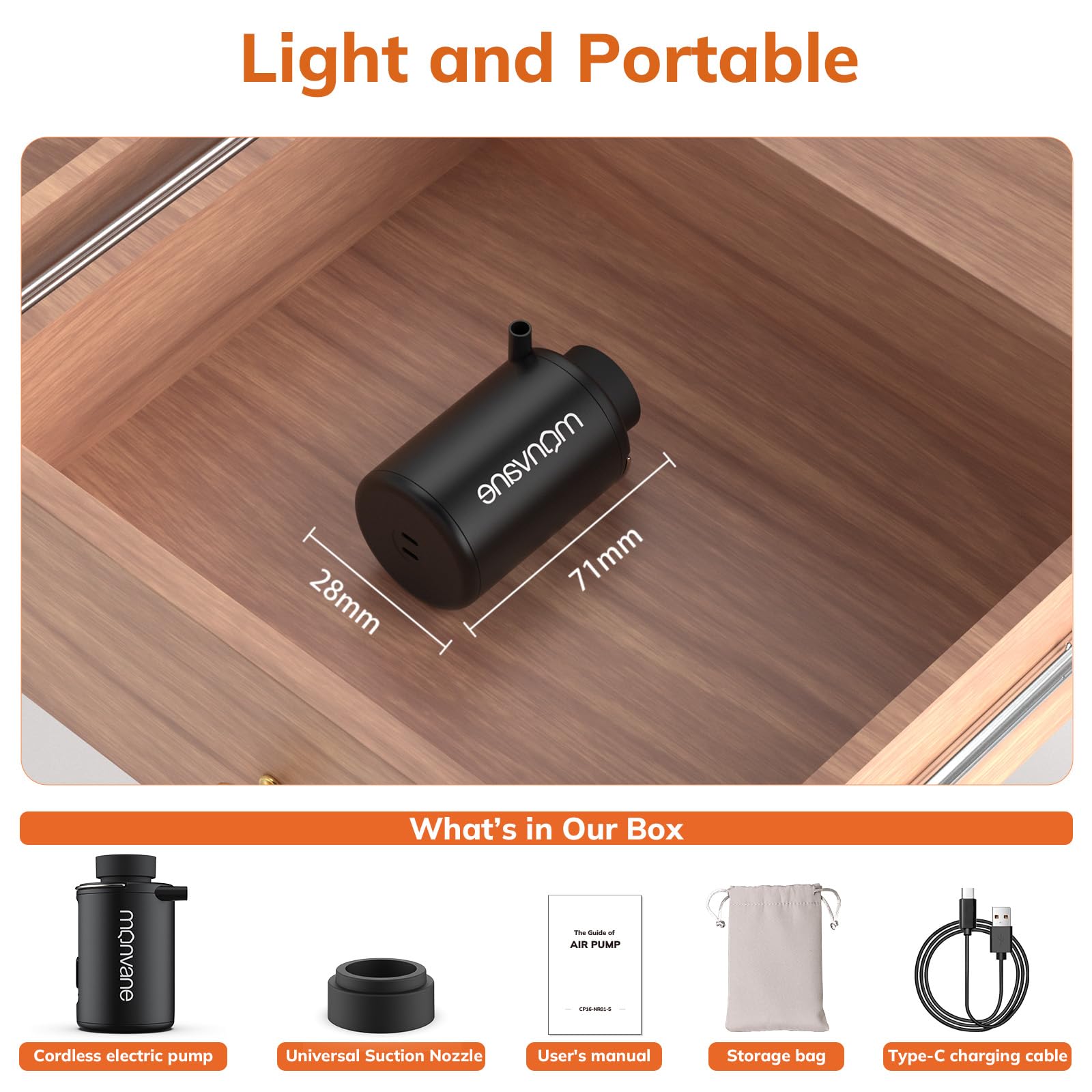 Matériau premium : Pompe à air portable en ABS résistant à l'usure. Spécification:Matériel produit: ABSPoids du produit: 150gTaille du produit: environ 10,6x6,4 cm / 4,17x2,52 poucesListe des produits:1 * mini pompe à air5 * BuseNotes: En raison de différents paramètres d'éclairage et d'écran, la couleur du produit peut être légèrement différente de l'image. Machines pour sacs sous vide SVJ 420 - XL SUR DEVIS Promo Sacs Sous-vide chez Centrakor Léger et portable : Format mini optimisé pour une portabilité maximale, cette pompe à air compacte s'emporte et se range sans effort dans vos espaces de stockage Pompe À Vide Pour Sac Sous Vide, Mini Pompe À Air Électrique Portable Pratique universel: Un outil indispensable pour la maison, le voyage ou la vie étudiante. Respecte les réglementations des compagnies aériennes et facilite la gestion de l'espace dans les bagages par compression efficace. Extracteur Sacs Sous Vide Pompe à Air électrique à Sac Sous Vide Pompe à Air éLectrique Pour Sacs Pompe Sans Fil Voyage Camping Capacité de compression améliorée : Flux d'air stable via l'architecture moteur perfectionnée, offrant puissance de compression efficace et aspiration rapide robuste pour tâches quotidiennes. Parfaite pour les voyages de camping, les aventures de voyage ou le gonflage de vélos, de kayaks, de radeaux, de ballons de football, de basketballs, de couettes et de vêtements. Son design petit et portable garantit qu'elle est toujours prête à être utilisée, que ce soit sur la route ou à la maison.