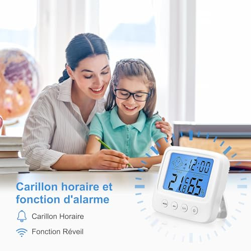 Double fonction de surveillance : mesure avec précision à la fois la température intérieure et les niveaux d'humidité, parfait pour suivre votre environnement de vie. * Dimensions : 105 x 60 x 10 mm. Transmetteur de température et d'humidité 0-5V... – Grandado Hygromètre numérique, thermomètre d'intérieur ... – Grandado Fonction heure et date : comprend une horloge intégrée avec affichage du calendrier et fonction d'alarme pour vous aider à rester organisé tout au long de la journée. Mengshen Thermomètre hygromètre numérique, moniteur d'humidité de température intérieure et extérieure, bureau à domicile température jauge d'humidité mètre - écran lcd, batterie incluse - TH03 Indicateur de confort : affiche des icônes de niveau de confort, vous permettant d'évaluer vos conditions intérieures pour un confort de vie optimal. Options de placement : conçu avec un support et un trou de suspension, ce qui le rend adapté pour un montage sur table ou mural dans n'importe quelle pièce. Vinabo Thermomètre Hygromètre Intérieur Digital à Haute Précision, Hygromètre Digital Intérieur, Thermomètre Numérique de Bureau Avec Moniteur de Température et D'humidité - Rétroéclairage - Horloge | P'tit Colis Grand écran LCD : dispose d'un écran numérique clair pour une lecture facile des données de température et d'humidité en un coup d'œil. Caractéristiques : * Grand écran LCD : dispose d'un écran numérique clair pour une lecture facile des données de température et d'humidité en un coup d'œil. Caractéristiques : * Nom du produit : compteur de température et d'humidité., *Matériau : ABS., Couleur : blanc.