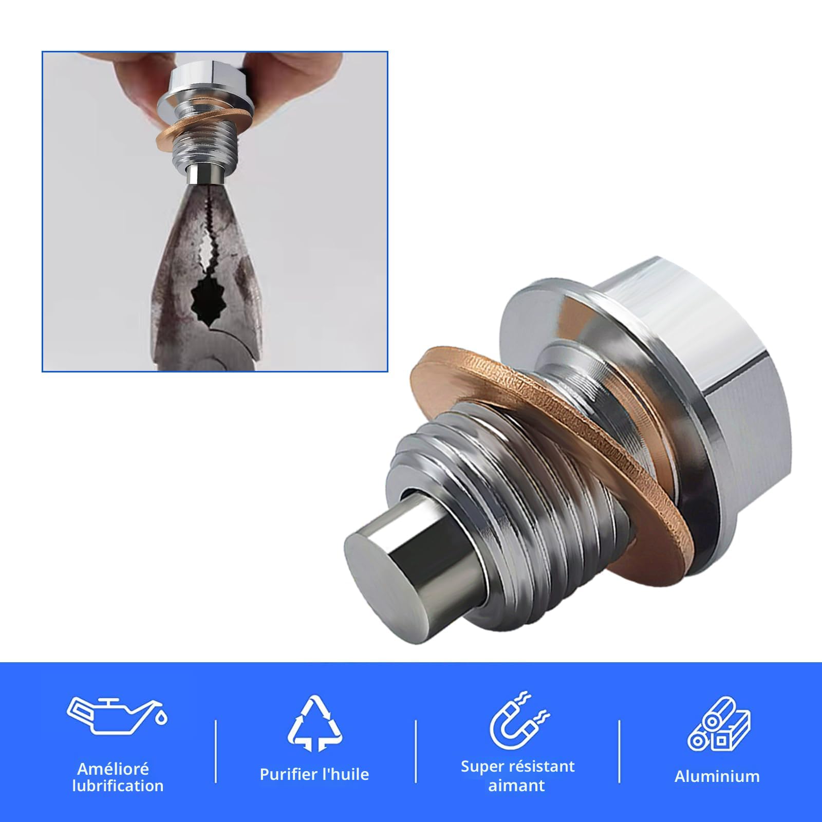 Installation simple: retirez l'ancien bouchon, insérez le joint du bouchon de vidange magnétique, serrez et c'est tout ! M12x1.5 Magnétique Bouchon de Vidange d'Huile Gris Di56903 - Auto Lors de la prochaine vidange, il vous suffira d'essuyer l'aimant pour éliminer les résidus métalliques. Aimant puissant: Le bouchon de vidange d’huile magnétique intégré attire les fines particules métalliques et les contaminants présents dans l'huile. Veuillez vérifier le filetage de votre véhicule avant l'achat Bouchon Huile Moteur Hcunbsu M14 X 1,5 Bouchon De Vidange D'huile Magnu00e9tique, Vis De Carter D'Huile, Avec Rondelle En Cuivre, Bouchon De Vidange De Carter D'Huile En Acier Inoxydable Joint De Vidange Avantages: Fabriqué en acier inoxydable antirouille : durable et résistant à la corrosion Aimant puissant pour une capture efficace des particules métalliques Joints toriques en cuivre pour une étanchéité parfaite Installation rapide et sans outil Installation et réutilisation faciles: Le bouchon de vidange se monte au même emplacement que le bouchon d'origine. Compatibilité universelle (M14x1,5): Le joint du bouchon de vidange est compatible avec la plupart des véhicules équipés d'un filetage M14x1,5, y compris les voitures, les motos et les bateaux. Kit complet: Ce bouchon de vidange d'huile magnétique M14x1,5 est fabriqué en acier inoxydable résistant à la corrosion et possède un puissant aimant. Bouchon de Vidange M14 x 1,5 Bouchon Vidange d'huile Magnétique en Acier Inoxydable avec 5 Pièces Rondelle Joint Cuivre en Cuivre Remplacement Le kit comprend 1 bouchon de vidange et 5 rondelles d'étanchéité en cuivre VBESTLIFE Rondelles de bouchon de puisard Assortiment de bouchons de...