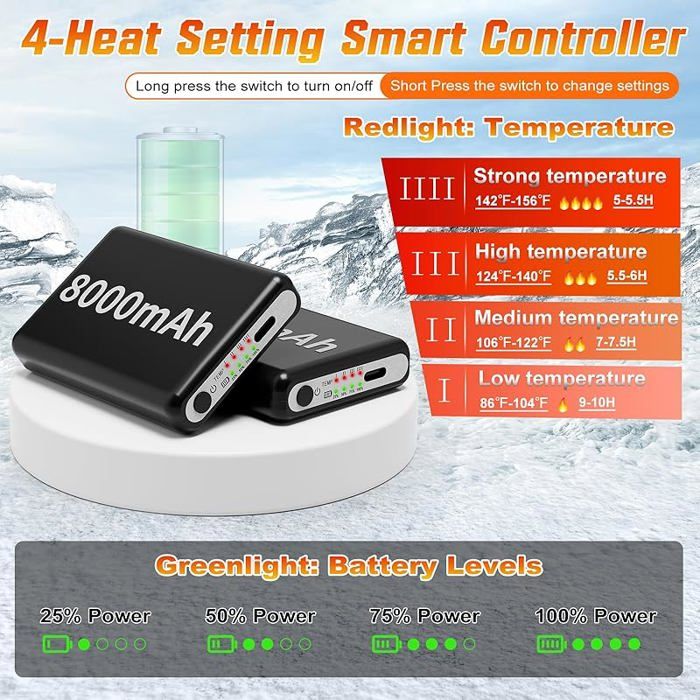 Chaufferette Pied Rechargeable Semelles Chauffantes électriques Chauffantes Pour Chaussures Confortables, Contrôleurs De Température, Lavables Par USB, Pour Ski, Chasse, Randonnée, Camping, Sports De Plein Air, B, 45 Chaufferette Pieds Rechargeable Elles adressent ment l'inconfort induit par le froid dans des contextes comme l'alpinisme ou les aventures à moto où maintenir la chaleur est . La meilleure semelle chauffante - 2022 - Avis et Comparatif complet Câble d'extension semelles chauffantes Lenz Extension cord 80 cm Parfaites pour le camping ou les jogging matinaux dans des environnements froids, elles offrent une chaleur durable et agréable. La technologie rechargeable assure une performance continue, apportant un confort supérieur pour les enthousiastes de sports d'h La meilleure semelle chauffante - 2022 - Avis et Comparatif complet Chaleur pour Passionnés Plein Air: Les semelles chauffantes avec fonction rechargeable maintiennent une chaleur stable des pieds, idéales pour des activités incluant le ski, la chasse et la marche en extérieur. Restez au chaud toute la journée grâce à semelles chauffantes rechargeables haute densité. Capacité de la batterie : Gauche : 2100Mah, Droite : 2100MahEntrée : CA/100-240 V, 40-60 Hz. Options de Chaleur Toute la Journée: Les semelles chauffantes incluent trois options de température personnalisables, maintenant la chaleur pendant des durées variables pour s'adapter à différents besoins et situations. Sortie : 4,2 V-5 VDurée de vie : Plus de 500 cyclesTaille : M Taille : 35-40 EurosTaille L : 41-46 eurosListe:1 paire * semelles1 * télécommande1 * câble de chargement1 * mode d'emploi Contrôle Sans Fil Pratique: Les semelles chauffantes rechargeables sont faciles à utiliser avec une télécommande sans fil, permettant des ajustements de température sans effort pendant la marche. Ces semelles chauffantes procurent un confort thermique supérieur pour les activités de plein air, une chaleur constante tout au long de la jo Câble de chargement : TP-CTension : 3,0 V-4,2 V.