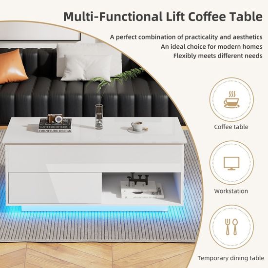 Afin d'éviter les rayures dues aux frottements pendant le transport, une couche de film protecteur recouvre la surface de la plaque brillante. Meuble Rangement Salon Design Table Basse Relevable Avec 1 Et 1 Niche - 100 X 70.5 X 45 Cm - LEDs Table Salon Avec Tiroir Et LED L’éclairage se branche facilement via USB sur votre téléviseur, votre ordinateur ou une power bank (adaptateur secteur non inclus). Matériau :Panneau de particules Dimensions Entièrement Déplié : 100 x 50 x 70,5 cm (L x l x H), Couleur : Blanc/Noir Remarque En raison de l'utilisation de données de mesure manuelles, il peut y avoir une erreur de 2 à 3 centimètres, ce qui est normal. Ne l'endommagez pas, il suffit de retirer le film protecteur pour que la plaque soit lisse et propre. Capacité de Charge : 5-50 kg (le bureau peut supporter 5 kg) Table basse 103x50x46 cm - avec plateau relevable - avec 2 portes en... Meuble Table Salon avec Tiroir à Djibouti Veuillez vous assurer que les deux colis ont bien été livrés avant de commencer le montage. Dimensions Fermé : 100 x 50 x 55 cm (L x l x H) Le design combine élégance et praticité : Seul le panneau avant présente une finition brillante qui reflète la lumière, tandis que les autres surfaces ont une finition mate. Livré avec un câble USB 5V 2A (connecteur USB non inclus) qui peut être branché sur votre téléviseur, votre ordinateur, votre batterie externe, etc. Elle se caractérise par une faible consommation d'énergie et des performances stables. Pour sublimer votre intérieur, une bande LED intégrée diffuse une lumière douce et personnalisable. En raison des paramètres de l'écran et de la lumière, il peut y avoir une légère différence de couleur, ce qui est normal. La vie a besoin de rituels, les lumières colorées rendent votre vie relaxante et passionnante. Nous vous remercions de votre patience. Cette hauteur ajustable en fait bien plus qu’un simple meuble d’appoint : c’est une solution pratique pour les petits espaces, les studios ou les salons polyvalents. Interface USB, sans prise Spécifications Dimensions : 100 x 50 x 55-70,5 cm (L x l x H) Rangement Intelligent et Spacieux : Il comprend un tiroir et un compartiment de rangement dissimulé sous le plateau relevable, idéal pour ranger les télécommandes, les livres et autres objets du quotidien. Avant de commencer le montage, veuillez vous assurer que les deux colis ont bien été livrés. Table Basse Relevable Brillante 100x50x55 Cm, LED, 1 Tiroir, 50 Kg, Pratique Pour Salon - Table basse Toutes les photos sont prises à la lumière naturelle. Veuillez noter que seule la face avant est en plaque brillante, les autres faces sont en plaque mate.