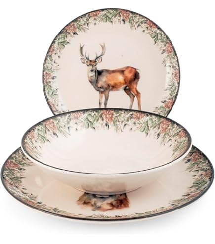 Dimensions : (assiette) Ø 19,5 cm, hauteur 2,7 cm | (bol) Ø 14,3 cm, hauteur 8,3 cm | (tasse à café) Ø 8,7 cm, longueur avec anse 12 cm, hauteur 10,5 cm | passe au lave-vaisselle et au micro-ondes MamboCat Service à petit-déjeuner 18 pièces vert forêt | 6 assiettes à petit-déjeuner, 6 bols à céréales de 550 ml et 6 tasses à café de 320 ml pour Noël, la Saint-Nicolas ou l'Avent Servez du pain et des petits pains le matin, des céréales ou du yaourt avec du thé, du cacao ou du café ou des gâteaux l'après-midi ainsi que de délicieux vin chaud ou punch le soir Faïence Lave-vaisselle MamboCat Set De Petit-Déjeuner 18 Pièces Eucalyptus I 6 Assiettes, Bols 400 Ml Et Tasses à Café 340 Ml Pour 6 Personnes I Vaisselle En Porcelaine Décor Plantes Vertes Service Petit-déjeuner Assiette à salade de petit déjeuner, ensemble de p... – Grandado WishDeco Witte Assiettes à Salade, Lot de 6, Petites Assiettes en... aboCat Lot de 6 assiettes pour sapin de Noël - 6 personnes