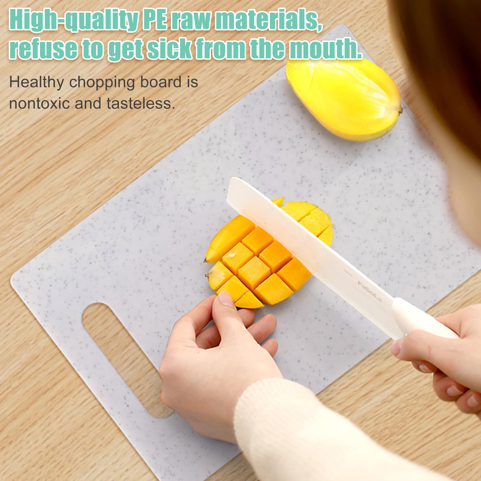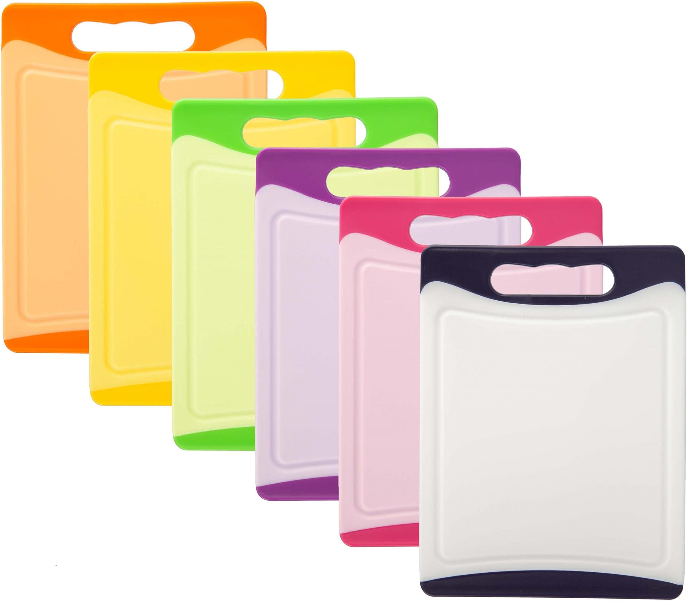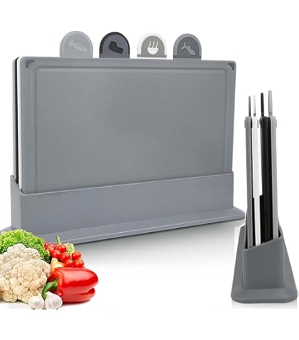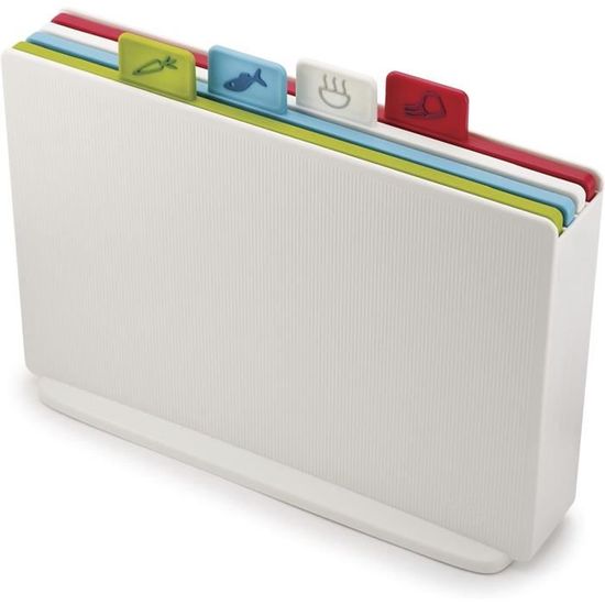 Lot de 4 planches à découper en plastique pour cuisine - Conviennent pour différents besoins - Avec un matériau en plastique antidérapant pour une expérience de hachage plus stable - Nos planches à légumes de cuisine seront un bon choix pour vous. Cet ensemble de 4 planches à découper comprend 4 planches de couleurs différentes et un support de rangement, avec des dimensions de 28,1 x 18,3 cm pour chaque planche et 14 x 8,8 x 2 cm pour le support Dimensions de l'emballage : 29 x 19 x 3,8 cm. Le set de planches à découper antidérapantes en plastique inodore est adapté pour couper les fruits, les légumes et la viande. Le set de planches à découper en plastique est équipé de poignées texturées qui offrent une surface antidérapante pour couper, de sorte que vous n'avez pas à vous soucier que les ingrédients glissent des planches. Planche à Découper, Lot De 4 Planches à Découper En Plastique De Couleurs Avec Icones Alimentaires Et Base De Plateau Planche A Petit Dejeuner Antiderapante Sans Bpa Antibacterienne Pour Poisson Legumes Fruits Viande Pain Poids de l'emballage : 760 g., Conseils : 1., En raison des différents éclairages et affichages, il peut y avoir des différences de couleur, ce qui est normal. Le lot de planches à découper contient 4 planches à découper de 28 x 18 cm pour séparer différents types d'aliments. Le lot de planches à découper de cuisine contient 4 planches à découper de couleurs différentes avec des supports de rangement faciles d'accès à tout moment. Contenu de la livraison : 4 planches à découper. Planches à découper: Soldes jusqu'à -25 1 support pour planche à découper Planches à découper colorées avec motif de codage : cet ensemble dispose de 4 planches à découper, équipées de supports de rangement et de divers codes alimentaires pour éviter la contamination croisée entre différents types d'aliments