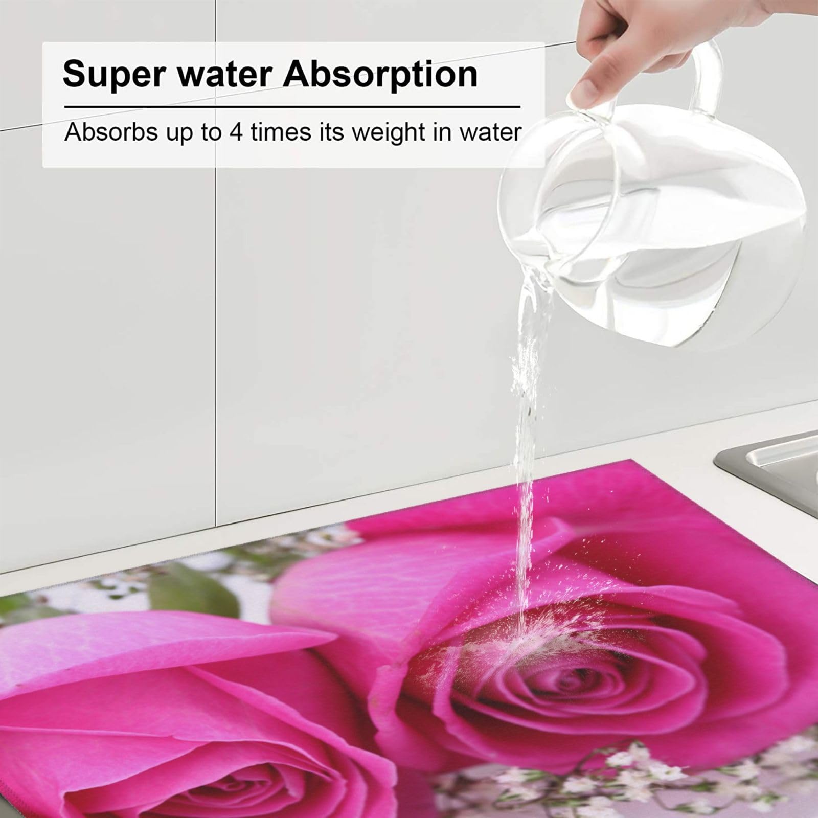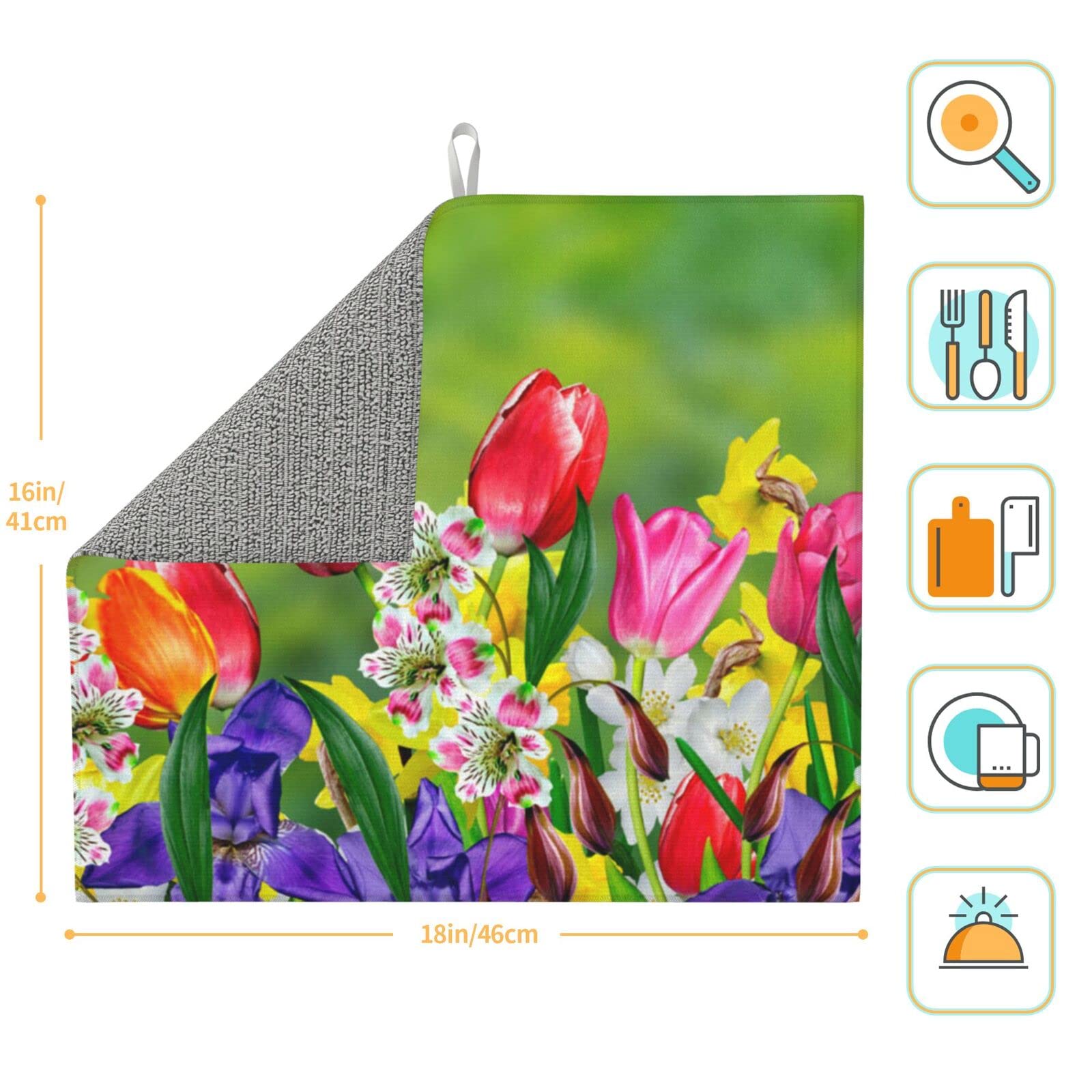 Tapis de séchage à vaisselle motif fleurs printanières 61 x Tapis De Séchage à Vaisselle Floral Pour Comptoir De Cuisine, Imprimé Absorbant : le tapis de séchage à vaisselle est un design à 3 couches fabriqué en microfibre absorbante, éponge composite et tissu satiné de coton. Le tapis de séchage à vaisselle absorbe 4 fois son poids en eau Tapis Egouttoir Vaisselle, Tapis Absorbant Vaisselle En Nanofibres À...