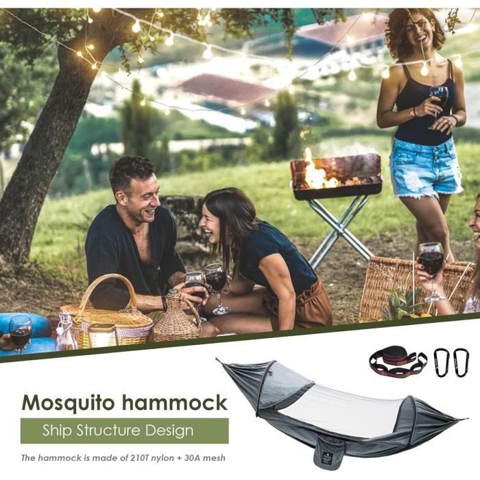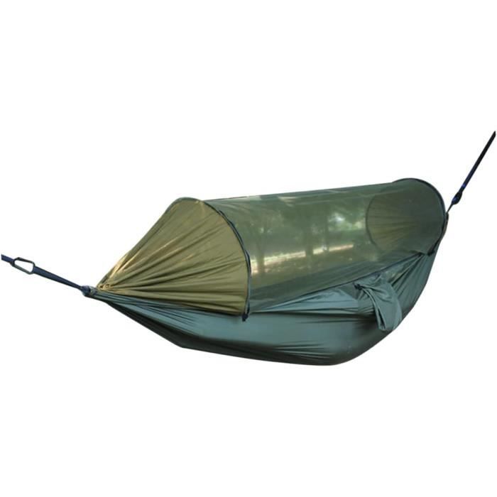 Il suffit de décompresser les fermetures éclair pour le retirer. Conception à Double Couche Le hamac est livré avec un sac de rangement. En utilisant deux poteaux (non inclus), le TARP peut être configuré en mode porche. MODE TENTE Même sans arbres, vous pouvez construire un abri autonome avec des bâtons de randonnée. Créez un abri autonome avec des bâtons de randonnée. La bâche imperméable est fabriquée en nylon ripstop 20D enduit de silicone avec un indice d'imperméabilité de PU3000 mm et un indice de protection solaire UPF50+, qui offre une protection solaire. La couche intérieure présente un nylon Ripstop résistant à la déchirure pour la durabilité et la capacité de charge élevée. Léger et durable, il peut être monté de différentes manières : comme auvent, abri imperméable ou auvent. 【Intérieur Spacial】 Le hamac de Skynest présente un design interne pentagonal, avec un filet de moustique à étendue extérieure qui l'éloigne de votre visage pour un maximum de confort. Hamac Randonnée Skynest Ultra-léger Hamac Avec Filet Et Bâche Anti-Pluie 335 Hamac Moustiquaire Hamac avec bâche anti-pluie et moustiquaire 【Technologie du Tissu】 La couche hamac exterieur est en nylon 20D avec un revêtement PU imperméable (2000 mm), en gardant la pluie même dans les tempêtes. Hamac De Camping Avec Filet Anti-Insectes Et Bâche Anti-Pluie 299,7 X... 【Mode Hamac】 Lorsque vous n'avez pas besoin de moustiquaire et de protection contre la pluie, le hamac de camping peut être utilisé seul comme un hamac de crête ordinaire, dans la cour, dans le parc et sur n'importe quel voyage. 【Conception à Double Couche】 Le hamac suspendu propose un fond à double couche robuste qui améliore la durabilité. (Veuillez noter: les poteaux doivent être achetés séparément., ) Hamac ultra-léger - avec moustiquaire - portable - séchage rapide Le hamac exterieur peut également se transformer en mode chaise, améliorant votre confort. 【Utilisation Indépendante de la Bâche Imperméable】Le hamac et la bâche imperméable peuvent être séparés et utilisés indépendamment. Vous pouvez ranger un tapis de camping entre les couches pour un soutien arrière supérieur, ce qui rend le sommeil nocturne plus confortable, en particulier bénéfique pour les dormeurs latéraux. Espace d'hébergement Extraordinaire