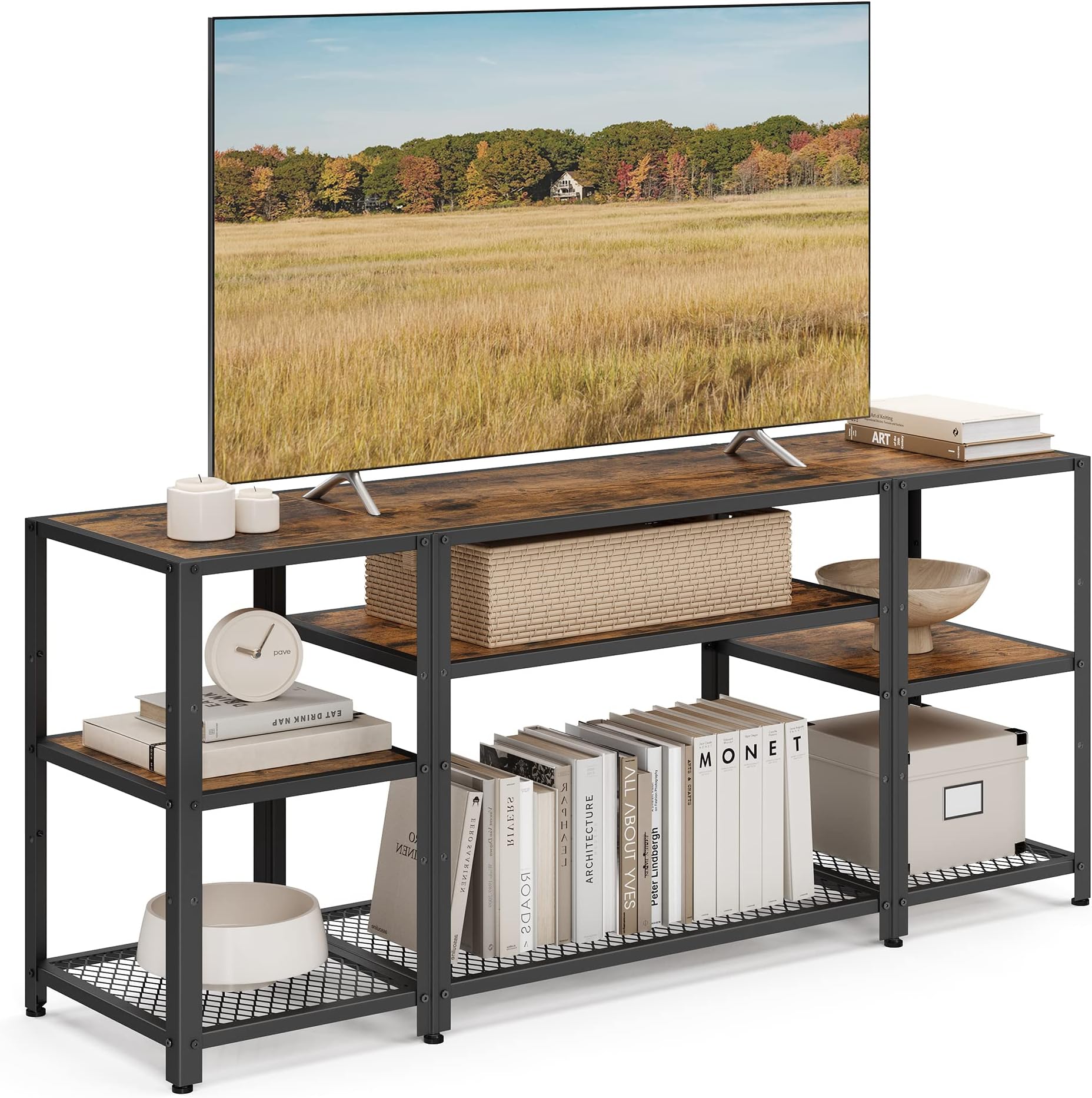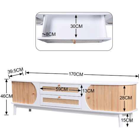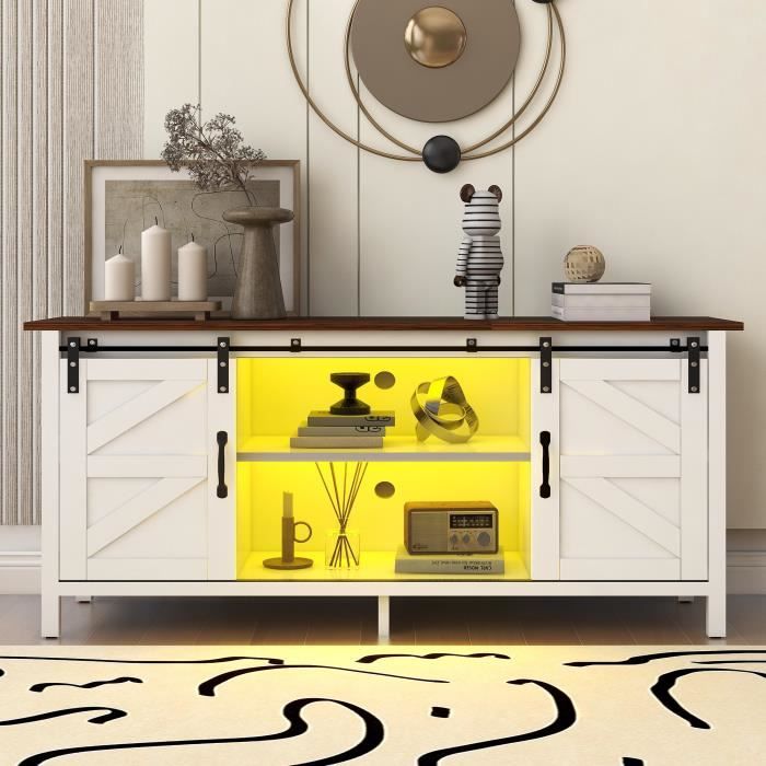 Comme indiqué sur la photo, si vous avez des questions, contactez-nous. Meuble TV Rustique en Bois Naturel Mixte avec Portes et Tiroirs Style Moderne et Minimaliste Idéal pour cacher des câbles chaotiques ou exposer des barres de son et des appareils avec élégance. Base stabilisatrice et renforts angulaires pour une durabilité maximale. Temps d'assemblage moyen : 60-90 minutes Meuble TV Design Campagnard MDF Meuble Tv Buffet Centre De Divertissement Avec 2 Portes Coulissantes Meuble TV 65 75 Pouces Portes Grillées Les pieds anti-rayures protègent des sols de qualité supérieure (bois laminé ou céramique) sans laisser de traces. Montage rapide avec instructions claires – Composants pré-étiquetés et manuel illustré inclus. Tous les outils nécessaires (clé en L, vis) sont dans l'emballage. 6 étagères réglables (hauteur max 30 cm) pour organiser console, livres, vinyles ou décorations. 17 Stories Meuble télé Farmhouse pour téléviseur de 65/75 po, meuble Idéal pour les pièces open-space ou studio. Meuble TV rustique table basse buffet bas style moderne du milieu du siècle pour télévision...
