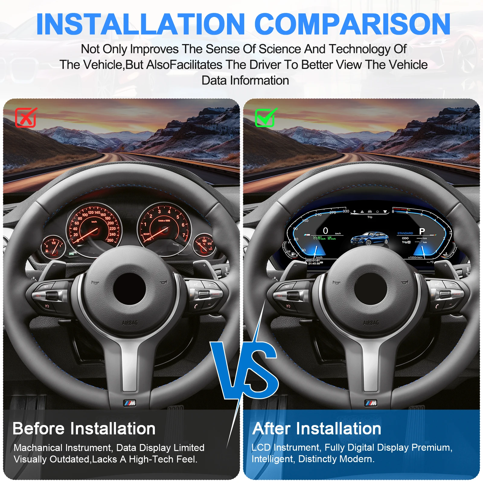 La condition préalable est que votre voiture dispose d'une fonction d'affichage HUD. Pour les produits présentant des problèmes de qualité dans un délai d'un an, nous fournissons un service après-vente. TABLEAU DE BORD BMW 3 Tournée (F31 EUR 244,62 - PicClick FR Il n'est pas nécessaire de modifier les câbles de votre voiture. Vous pouvez les choisir librement. Modèles de voiture applicables : Le combiné d'instruments numérique LCD convient à la BMW série 3 F30 F31 GT F34(2013-2020), à la BMW série 4 F32 F33 F36 (2013-2020). HUD Supporte l'affichage HUD de la voiture d'origine (NOTE : Si votre voiture possède la fonction d'affichage HUD, veuillez nous en informer). Il n'y a pas beaucoup de câbles à connecter. Description du produit 12., 3 inch LCD Digital Instrument Cluster Speedometer Dashboard (tableau de bord) Pour BMW Série 3 F30 F31 GT F34(2013-2020) Pour BMW Série 4 F32 F33 F36 (2013-2020) Caractéristiques : Système d'exploitation Linux Prise en charge de l'affichage HUD de la voiture d'origine Écran antireflet de 12,3 pouces à lumière bleue Sélections multiples de l'interface utilisateur Prise en charge de plusieurs langues Il conserve toutes les fonctions de la voiture d'origine, telles que l'affichage du kilométrage, de la consommation de carburant, de la vitesse, de la température de l'huile, de la pression des pneus, du rappel de fermeture/ouverture des portes, etc. Cluster Digital BMW Compatible HUD Tableau De Bord Numérique 12.3'' Pour BMW F30 F31 GT-F34 F32 écran 12,3 Pouces F30 F31 F32 F33 F34 F36 Il est équipé d'un écran haute définition de 12,3 pouces. Ensemble d'instruments numériques 12,3 compatible avec Prend en charge la quasi-totalité des fonctions d'origine du véhicule. Installation facile : Le processus d'installation est très simple. 4 Modes Il y a 4 types d'interface utilisateur, chaque interface a 3 couleurs (rouge, jaune, bleu), vous pouvez choisir les styles qui vous plaisent. Prend en charge toutes les caractéristiques d'origine. (NOTE : L'adaptateur HUD doit être acheté séparément, si votre voiture possède la fonction d'affichage HUD, veuillez nous en informer). Module d'affichage HUD : Le tableau de bord prend en charge l'affichage HUD du véhicule d'origine. Chaque interface utilisateur a 3 types de couleurs (rouge, bleu et jaune). Après l'installation VS Avant l'installation