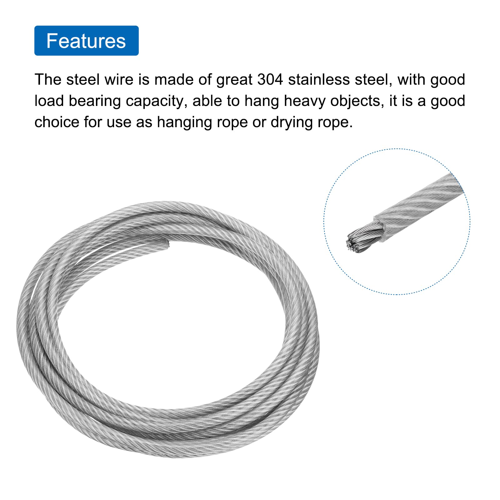 Le câble est revêtu de vinyle, résistant à la corrosion et à la rouille, et peut être utilisé dans divers environnements, intérieurs et extérieurs. Ce produit est disponible dans différentes longueurs et tailles, veuillez donc confirmer la taille dont vous avez besoin avant de passer votre commande. Câble Décoration Jardin Mariage CÂBLE MÉTALLIQUE 5M Acier Inoxydable V4A 316 3mm 7x7 Cordes Inoxydable Câble étendoir à Linge Serre DIY Fabriqué en acier inoxydable 304 de qualité, il est difficile à corroder et à casser. Que vais-je recevoir ?Longueur : 328 pieds (100 m)Diamètre extérieur du manchon : 2 mmMatériau du câble : Acier inoxydable 304Matériau de la gaine : PVCCouleur du manchon : BlancDans le paquet : Câble en acier inoxydable de 328 pieds avec 30 manchons en aluminium à double trouQuels sont les avantages du produit ?Le câble est revêtu de vinyle, résistant à la corrosion et à la rouille, et peut être utilisé dans divers environnements, intérieurs et extérieurs inclus. Lot De 2 Tendeurs En Acier Inoxydable Avec Deux Crochets V4A Selon DIN 1480 1478 Tendeur De Câble Crochet Crochet Tendeur à Vis Vis Vis De Serrage M 6 Mm Utilisé largement pour soutenir des guirlandes, suspendre des lumières, décorations de patio, jardinage, construction de serres pour légumes et stands de fleurs, étendre du linge, adapté pour les célébrations de mariage et les occasions festives, rampes de câbles DIY, etc. Qu'est-ce que c'est ?Utilisé largement pour soutenir des guirlandes, suspendre des lumières, décorations de patio, jardinage, construction de serres pour légumes et stands de fleurs, étendre du linge, adapté pour les célébrations de mariage et les occasions festives, rampes de câbles DIY, etc. 1000 x Vis Autoforeuse-Tête Hexagonale Avec Fente ( x L) 4,2 x 16mm...