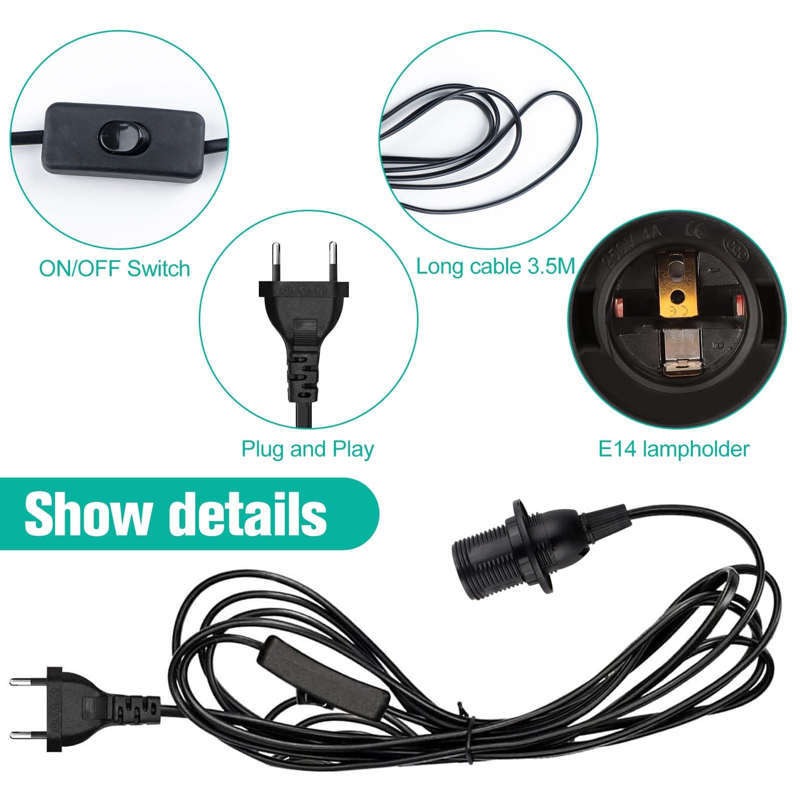 Les câbles sont emballés individuellement dans des sacs à fermeture à pression., Ampoule non incluse. Câble avec fiche, interrupteur et douille E14 (petit filetage/ampoule bougie) ou E27 (filetage normal/ampoule). Domaine d'application : uniquement pour une utilisation dans des pièces fermées., Douille E14., Utilisation dans le salon. Set câble de branchement « E14 » pour lampe VBS | Loisirs créatifs VBS Service Hobby Douille de lampe E27., Prise d'alimentation de type C - 2 broches (Europlug). Kit composé d'un câble électrique en tissu tressé avec interrupteur marche/arrêt et prise blanche, idéal pour réaliser rapidement et facilement votre lampe au style vintage Câble Pour Ampoule Bougie GURU SHOP Câble De Prise, Câble D`alimentation, Câble De Lampe 2 M, Avec Interrupteur Et Prise - En Vrac Ou En Faisceau, Noir, E14, Couleur : Noir, E14, Accessoires électriques Cordon Alimentation 2m Câble d'alimentation 2 broches IEC320 C7 norme EU 1.5 métres...