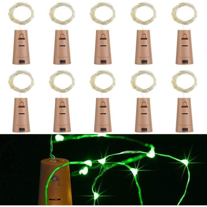 LED Bouchon Bouteille Fête Lot De 10 LED Bouteille Guirlande Liège Lampes, 1M 10 LED Lampes De LED Couleur Bouteille Vin -Utilisation diverse : Nouvel an, Noël, Fête, Anniversaire, Mariage Décoration, etc. Guirlande Lumineuse - Bouteille en Liège - 20 LED Blanc Chaud - Pile... Description : Ce produit a la forme d'un bouchon en liège, pour redonner vie à vos bouteilles de vin vides ! Éclairage :Blanc,blanc chaud,Rouge,Vert,Bleu,Rose,Violet,Jaune,4 Coloré,5 Coloré un de chaque. Par 3 x AG13 Batterie (piles incluses, facile à remplacer), interrupteur marche / arrêt sur la batterie, facile à utiliser, bouteille avec des lumières plus de 40 heures de vie de la batterie continue. Guirlande Lumineuse - Bouteille en Liège - 20 LED Blanc Chaud - Pile Étanche - Le fil de Argenté est imperméable à l'eau, vous propose des grands effets d'éclairage. Facile à introduire à l'intérieur d'une bouteille de vin. Spécifications : Matériel : Argenté et plastique Éclairage :Blanc,blanc chaud,Rouge,Vert,Bleu,Rose,Violet,Jaune,4 Coloré,5 Coloré un de chaque Total de lampes LED : 10 LED Longueur du produit : 3., 3 Ft Alimentation : 3 x piles LR44 Durée de vie de la pile : environ 30-48 heures Le colis inclut : 10 x Bouchon à fil Argenté lumineux Caractéristiques : -Fil Argenté flexible qui vous aide à créer facilement les formes que vous voulez.