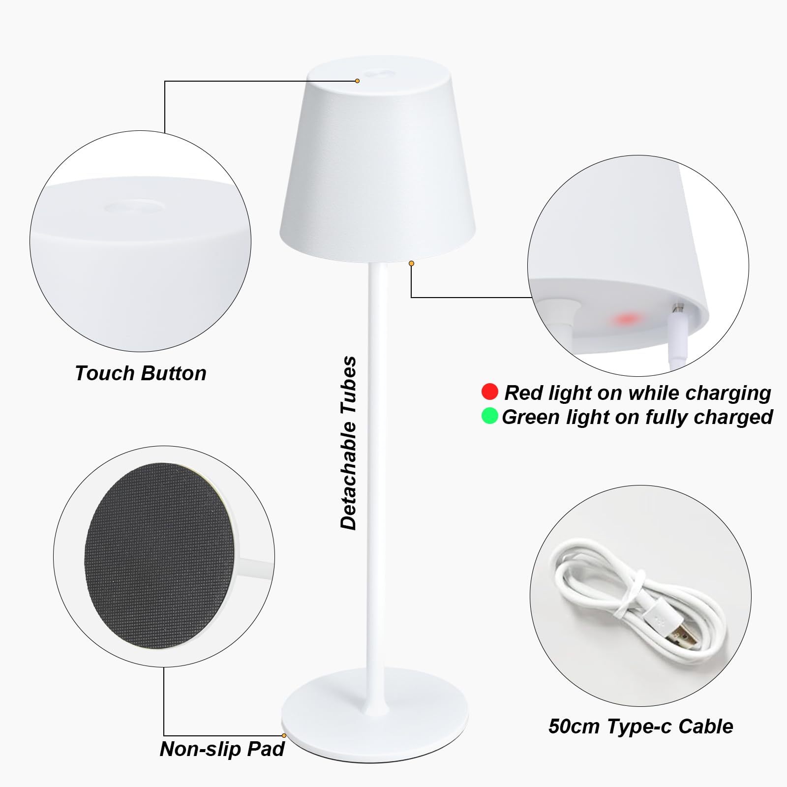 Lampe De Table Sans Fil LED, Lampe De Table Avec Batterie, Lampe De Table Sans Fil Led Lampe De Table Avec Batterie Lampe De Table Led A Intensite Variable Lampe De Chevet 3 Couleurs De Lumiere 92501962 Vous n'avez pas à vous soucier d'un niveau de batterie faible, car la lampe de table se recharge complètement en 3 à 5 heures à l'aide du câble de chargement USB-C fourni. Lampe De Chevet Tactile Lampe De Table Intensité Variable 3 Voies Pour... PreeOtti lampe de table Vidéo de marchand Cette lampe sans fil rechargeable est non seulement idéale pour l'éclairage et la décoration de votre maison, mais vous pouvez également l'utiliser lors de vos sorties camping, lors d'un dîner en plein air avec votre famille ou vos amis, ou en cas de panne de courant. [Une Meilleure Lumière, Une Meilleure Vie] - PreeOtti croit fermement en ce credo et s'efforce de fournir à ses précieux clients les meilleurs produits d'éclairage intérieur. Lampe Chevet Camping Extérieur Lampe De Table LED PreeOtti Sans Chaque lampe de table est rigoureusement contrôlée pendant la production et l'emballage afin de garantir l'excellente qualité du produit. [Lampe de Table Rechargeable] - La lampe de table LED rechargeable peut être utilisée sans interruption pendant 10 à 40 heures lorsqu'elle est complètement chargée. Cette lampe de table sans fil utilise une technologie LED économe en énergie qui fournit une lumière vive et durable tout en consommant peu d'énergie. En appuyant longuement sur le bouton situé sur le dessus de la lampe de table LED, vous pouvez régler la luminosité de 10 % à 100 %.