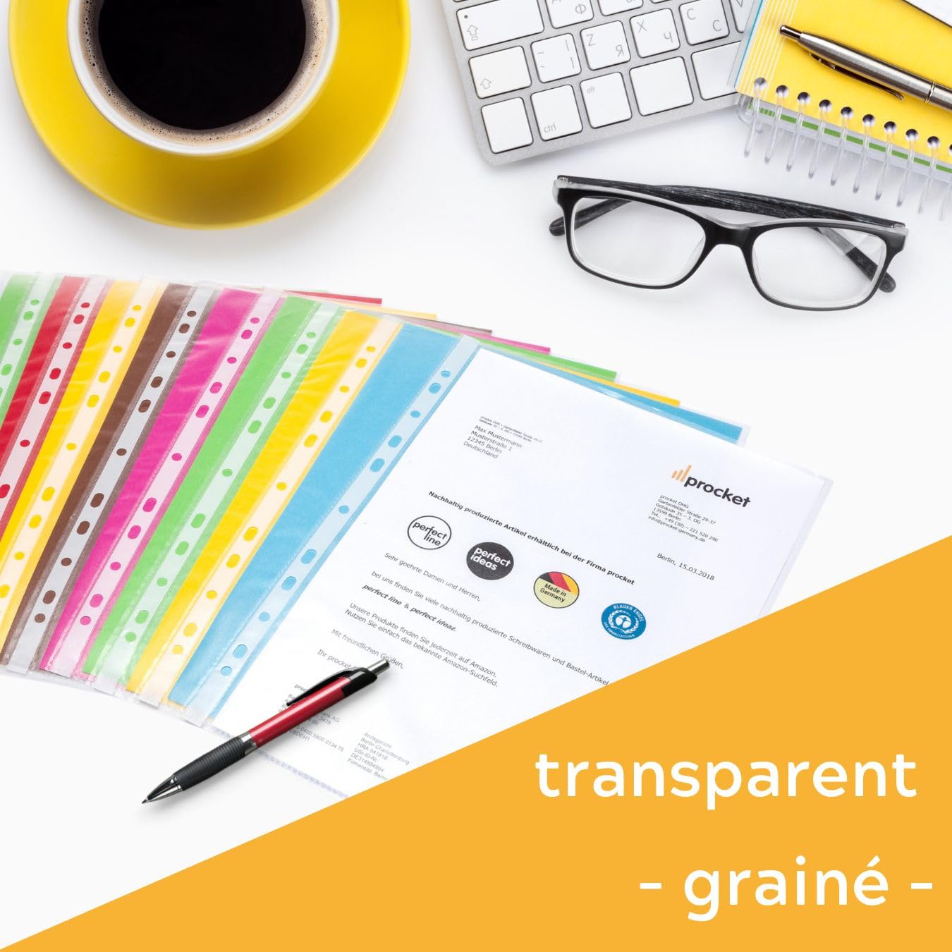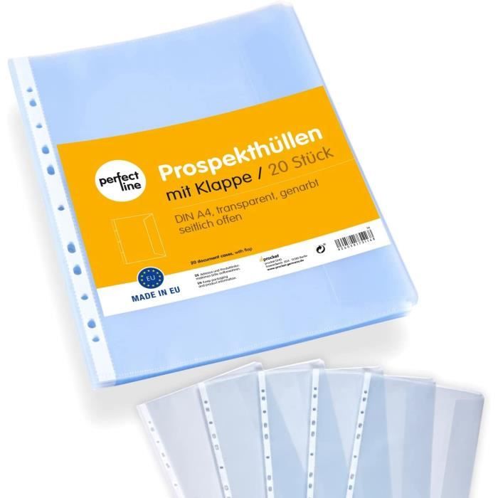Couleur : 18 pochettes pour documents, bonne reconnaissance des documents grâce au film plastique, ouvertes sur le côté, (pour un maintien optimal, insérer le rabat dans le film après l'avoir rempli) Caractéristiques fortes : indélébile, sans acide, pochettes classeur A4 avec une épaisseur de film de 0,145 mm (145 my), matériau plastique PP (polypropylène) écologique et recyclable, extra fort Format idéal : dimensions intérieures de 8., 2 x 12 in (20,9 x 30,4 cm) par pochette, avec multi-perforation pratique & renforcement blanc des bords perforés, capacité idéale jusqu'à 20 feuilles (A4) Pochette Transparente Perfect Line 18 Pochettes Porte-documents Avec Rabat DIN-A4 Pochette Coin Transparente A4 Un ordre parfait : des films transparents incolores comme aide efficace pour protéger et classer divers documents, papiers, dossiers au format A4, facile à manipuler grâce à l'ouverture supérieure 12 pochette plastique A4 classeurs et cheises, 6 couleurs pochettes... Reproduire recommander image porte pochette plastique Mauvais fonctionnement Géa