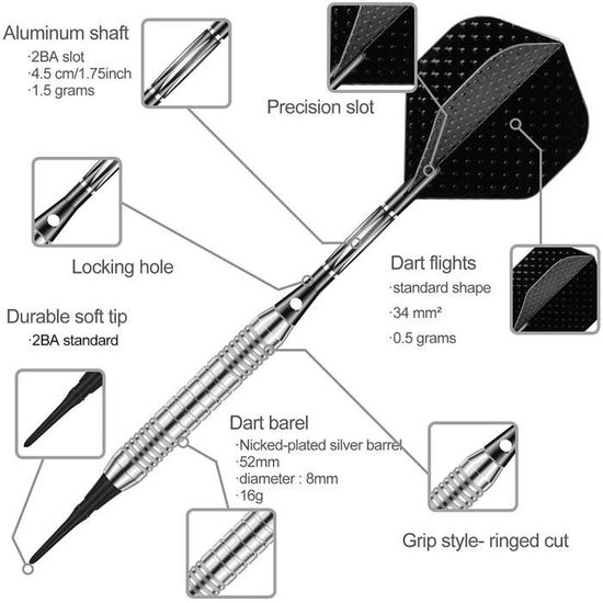 Le support de vol en aluminium optimise l'équilibre de vos fléchettes et assure un ajustement précis des ailettes. ✅ Tiges de fléchettes Champify Fusion de 42 mm : la base des tiges Fusion est en polycarbonate. Avec une épaisseur de 300 microns, ils offrent la combinaison optimale de durabilité et de poids. Solltest du nicht zufrieden sein, bekommst du dein Geld zurück - 1 Jahr lang! ✅ Remplacement facile : les tiges Fusion avec filetage 2BA sont faciles à monter sur des fléchettes en acier et des fléchettes souples et peuvent être remplacées rapidement. Accessoire Flechette Champify® FusionTech Lot De 15 Tiges De Fléchettes De 36 Mm Et 15 Ailettes Blizzard Fléchettes Acier Souples Cible de fléchettes numérotées | Eclipse Ultra Visible | Blanc | Métal... KESSER® Jeu de fléchettes électronique Professionnel, avec 15 fléchettes + 35 ailettes Pro 100