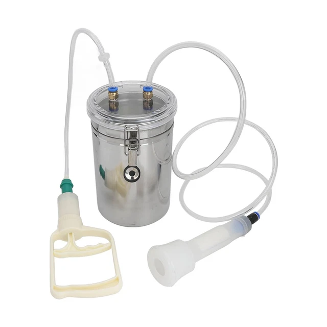 Construction : ce kit de traite est construit avec une bouteille robuste en acier inoxydable et un tube en PU, garantissant longévité et durabilité dans diverses conditions. MACHINE À TRAIRE de Chèvre 2L Machine à Traire de Chèvre Domestique Achetez Machine à Traire de Vache 5L, Kit de Machine à Traire de Chèvre Trayeuse Électrique Portable avec Seau en Acier Inoxydable Portable Pompe à Vide Seau Trayeuse Double Tête pour la Ferme à Canada 19,5 x 11,7 cm / 7,7 x 4,6 pouces (mesure manuelle, une légère erreur peut exister) Comment utiliser : Ne serrez pas trop le couvercle lors de la traite, une étanchéité trop élevée entraînerait Inconfort pour les moutons lors du travail. Caractéristique du couvercle transparent : équipée d'un couvercle transparent, cette machine à traire de 2 L permet aux utilisateurs de surveiller facilement le processus de remplissage et de déterminer quand la bouteille est pleine. Capacité compacte : conçu avec une capacité, ce dispositif de traite est destiné aux fermes ou aux ranchs familiaux, améliorant l'efficacité de la traite sans prendre beaucoup de place machine à traire en acier inoxydable Liste des paquets : 1 x bouteille de 2 L 2 x Milker (avec connecteur noir) 1 x tube à double tête 1 x tube de poignée 1 x poignée 1 x manuel d'utilisation Remarque : Si le tube de direction double et le connecteur du trayeur ne peuvent pas être déconnectés, il doit être adouci avec de l'eau chaude avant de pouvoir le retirer, sinon il est facile d'endommager le connecteur. Aspiration impressionnante : la machine à traire manuelle est équipée de puissantes capacités d'aspiration, qui peuvent être facilement contrôlées pour répondre à différents besoins. Traire Vache Chèvre Acier Inoxydable Machine à Traire Manuelle Pour Chèvres, 2l, Grande Capacité Traite Vache Chèvre Portable