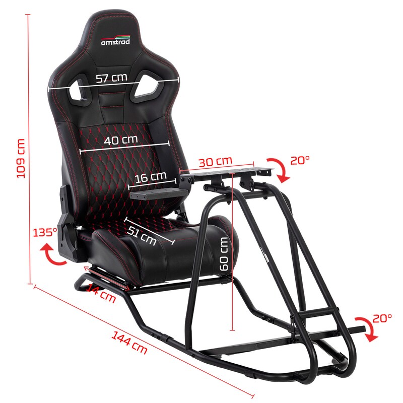 Vous pouvez également régler les pédales individuellement en modifiant l'inclinaison ou en modifiant la distance en avançant et en réinitialisant. Pour une position de jeu idéale, elle peut être réglée comme un siège de voiture. Ainsi, vous ajustez le siège de manière optimale à votre taille et êtes prêt pour le prochain jeu. Robuste : le siège rembourré avec revêtement en cuir synthétique et le cadre en acier revêtu par pulvérisation résistent même à des heures de plaisir de jeu sans dommage Ajustement parfait : la distance du siège pour le simulateur de course peut être réglée d'avant en arrière avec un levier, l'angle d'inclinaison du dossier peut être réglé avec une manivelle comme dans la voiture Siège Gaming Volant Pédales Simulateur De Cockpit De Siège De Course - Entièrement Réglable - Sans Support De Moniteur - VDD World FR Support Pédales Volant Réglage de l'inclinaison du siège : 30 - 90° Contenu de l'emballage : Siège de course Gaming MSW-SIM-01 : siège, cadre, support de pédale, support de vitesse, matériel de montage Avertissement De Sûreté Capacité de charge maximale : 120 kg. Réglable : le repose-pédale vous permet de régler l'inclinaison, l'arrière et l'inclinaison, la plaque de volant vous dirige vers le haut, le bas, l'avant et l'arrière vers le siège de course de jeu Fixez le levier de vitesse soit sur le côté gauche ou droit. Suivez les instructions de montage (français non garanti) pour maintenir la stabilité. Dardoo Siulateur de course ergonoique Cockpit Pro avec siège rouge avec support lobaire pour... Tout comme votre jeu, tous les composants du siège et de la structure peuvent être réglés individuellement. Positionnez le volant en hauteur comme à distance, selon vos souhaits. Le produit est utilisé sur une surface dure et plate. Le cadre en acier robuste du siège gamer est livré avec des points de fixation pré-percés pour le volant, les pédales et le levier de vitesse (non inclus). Volant de Course Et Pédale Logitech G923 (PC PS4 PS5 Siège simulation auto - Retrait 1h en Magasin Caractéristiques techniques : Matériau : plastique (polychlorure de vinyle), acier Couleurs : noir, rouge.