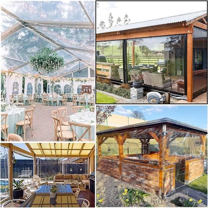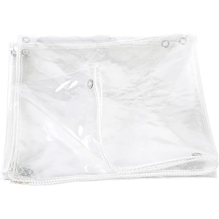 Dimensions personnalisables : Cette bâche transparente d'extérieur est disponible en plusieurs dimensions. Bâche imperméable en PVC : Nos auvents de terrasse sont fabriqués en PVC de 0,35 mm/0,3 mm d'épaisseur. Souple et résistante, elle est étanche des deux côtés et renforcée par une corde en nylon haute résistance sur les bords. Un simple coup de chiffon suffit, ou un rinçage à l'eau. Pratique et adaptée à une utilisation intérieure Contenu de la livraison : 1 bâche transparente. Souple et perforée, la bâche est facile à plier et à ranger. Entretien facile : La surface lisse de cette bâche imperméable est facile à nettoyer. Ils conviennent également pour couvrir les meubles de jardin et protègent efficacement contre la poussière et la pluie. Bâche Transparente Bache Imperméable avec Oeillets, Bâche De Protection Des coussinets en caoutchouc aux coins et des œillets métalliques renforcent sa durabilité, la rendant idéale pour couvrir voitures, abris de jardin, meubles, exploitations agricoles et jardins. Leur conception transparente vous permet de profiter de la vue tout en vous protégeant des intempéries. Bache Transparente Exterieur Epaisse Bâche Imperméable Transparente Avec Oeillets,0.35mm Matériau PVC Housse Transparente Extérieure Elle peut également servir de housse anti-poussière pour les meubles. L'écartement des anneaux métalliques est également ajustable. Nos bâches transparentes offrent une visibilité claire, vous permettant de garder un œil sur vos articles couverts tout en protégeant vos précieux biens de la pluie, de la neige et des rayons UV. De légers plis peuvent apparaître lors du transport, mais ils disparaîtront progressivement.