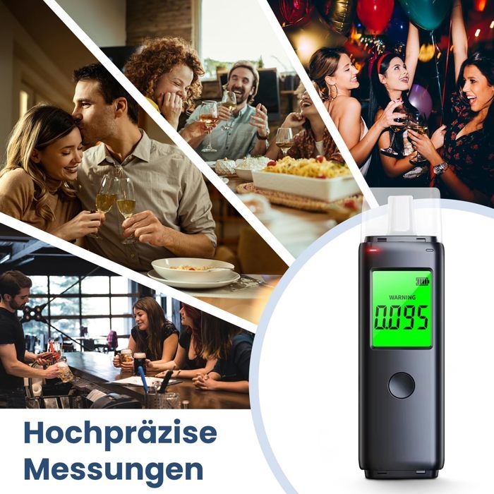 Paramètres ajustables pour plus de précision. Contrôle en entreprise : logistique, navettes, dépistage aléatoire du personnel. Usage domestique : auto-test après un événement, surveillance parentale des ados. La mémoire interne enregistre les 10 derniers tests, facilitant le suivi des habitudes de consommation d’alcool. Éthylotest LAFMATE AT-160, Testeur d'Alcool Haute Précision avec Seuil Mémoire de 10 tests intégrée pour un suivi simple et rapide. L’écran LCD signale immédiatement tout dépassement. 【Fonctionnalités principales】 Détection ultra-précise: Le capteur électrochimique intégré garantit une exactitude de ±0,005 ?C, surpassant les capteurs à semi-conducteurs classiques. Cinq unités disponibles (?C, ‰BAC, g/L, mg/L, mg/100 mL), adaptées aux voyageurs et aux conducteurs soumis à diverses normes internationales., Compact et robuste. Parfait pour vérifier son état avant de conduire ou pour surveiller sa santé. EN STOCK : Éthylotest Électronique Homologué - Alcootest Professionnel avec Capteur Semi-conducteur Haute Précision, Affichage LCD et 20 Embouts - Ethylometre Portable Voiture, Maison, Fête, Dyk-FR01465 pas cher. Livraison rapide partout en France Doté d’un capteur électrochimique avancé et calibré avec soin, mesure l’alcoolémie avec une plage de 0,000 à 0,500 ?C. Avec ses 74 g et son format de poche, cet éthylotest se transporte facilement. Testeur d'alcoolémie, alcootests pour Alcool Testeur d'éthylotest... Plage de mesure de 0,000 à 0,500 ?C, résultat obtenu en 3 secondes seulement après le souffle. Contenu de la livraison : Éthylotest × 1 Câble de chargement USB-C × 1 Embout buccal × 10 Manuel d'utilisation × 1 Étui de transport portable × 1 Suivi de santé : accompagnement du sevrage alcoolique et archivage des mesures. Durée du souffle réglable (2 à 8 secondes) et sensibilité au flux d’air modifiable. Ethylotest Electronique Homologué Éthylotest, Alcootest Ethylotest Electronique Sans Contact Avec Ecran LCD Numérique - Auto Meilleur éthylotest Electronique Format portable et pratique: Seulement 74 g pour un encombrement minimal : se glisse facilement dans une poche ou un rangement de voiture. Port de charge USB Type-C pour des recharges multiples, rangement simple dans la voiture ou le sac. LAFMATE Éthylotest électronique haute précision : votre allié pour une conduite sereine et un contrôle d’alcoolémie fiable, où que vous soyez. Entretien gratuit pendant 12 mois à compter de l’achat si un défaut de qualité survient lors d’un usage conforme.