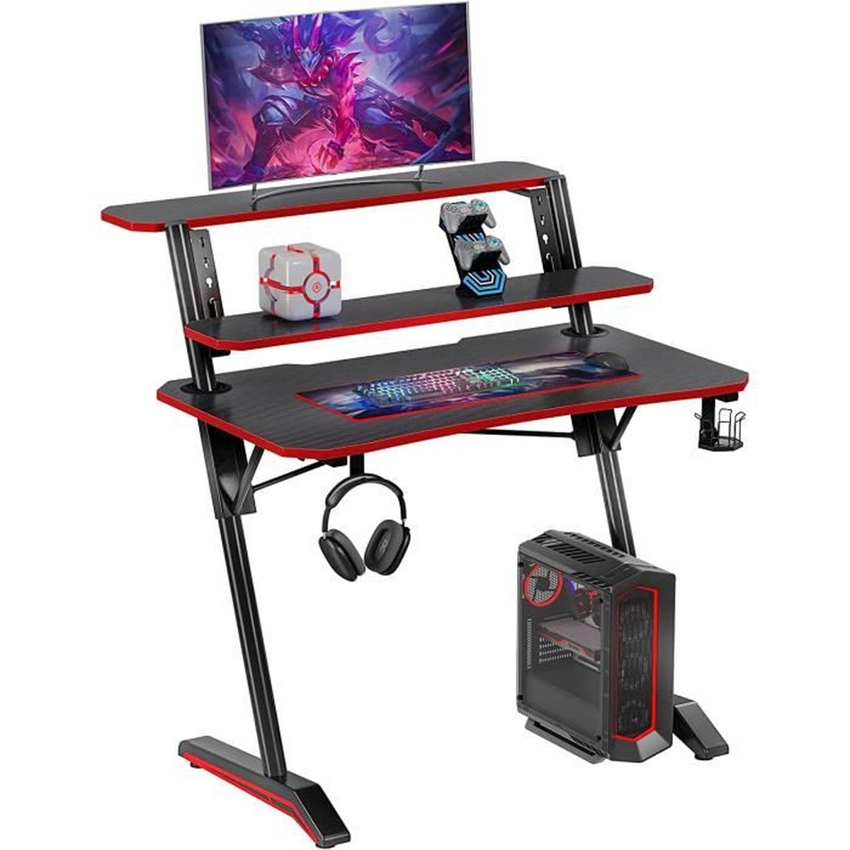 FONCTIONNALITÉS GAMING Deux passe-câbles, un porte-gobelet, un crochet pour casque et un support pour sac à dos/sac – organisation et confort sans effort. Réglage en hauteur : 56 – 79 cm UN BUREAU GAMING BIEN PENSÉ Le Hero 4., 6 RGB est bien plus qu’un simple bureau – il offre une base stable pour le gaming et le travail. Plus d’ordre et une meilleure organisation pour un espace de jeu ou de travail rangé. Équipement : crochet pour casque, crochet pour sac à dos/sac, porte-gobelet, tapis de souris XXL Idéal pour les gamers lors de longues sessions. AJUSTEMENT ERGONOMIQUE : 6 niveaux de 56 à 79 cm – réglage flexible pour différentes tailles. SUPPORTS SUPPLÉMENTAIRES : Avec crochet pour sac ou sac à dos et passe-câbles intégré. Bureau gaming HUZARO HERO 4.7 Noir, 160x75x75cm, Plateau Carbon, Pieds réglables, Bureau PC Bureau BLAT 160x60 cm noir/marron Avec sa large surface de travail, son porte-gobelet, son crochet pour casque et ses passe-câbles, il assure confort et organisation dans chaque setup. Dimensions du plateau : 160 × 60 cm Support Casque Gobelet Câbles Huzaro Hero 4.6 Bureau Gaming Réglable En Hauteur, 160x60 Cm Avec Bureau Pc 160x60cm Surface Carbone Épaisseur du plateau : 1,5 cm HAUTEUR RÉGLABLE 6 niveaux de réglage du plateau (56 / 60 / 64 / 71 / 75 / 79 cm) – adaptation parfaite à la taille du corps et au style d’utilisation. SPÉCIFICATIONS Fabricant : Huzaro , Modèle : Hero 4., 6 Black RGB (avec LED) TAPIS DE SOURIS XXL INCLUS : 80 × 56,5 cm – protège la surface du bureau et garantit des mouvements précis.