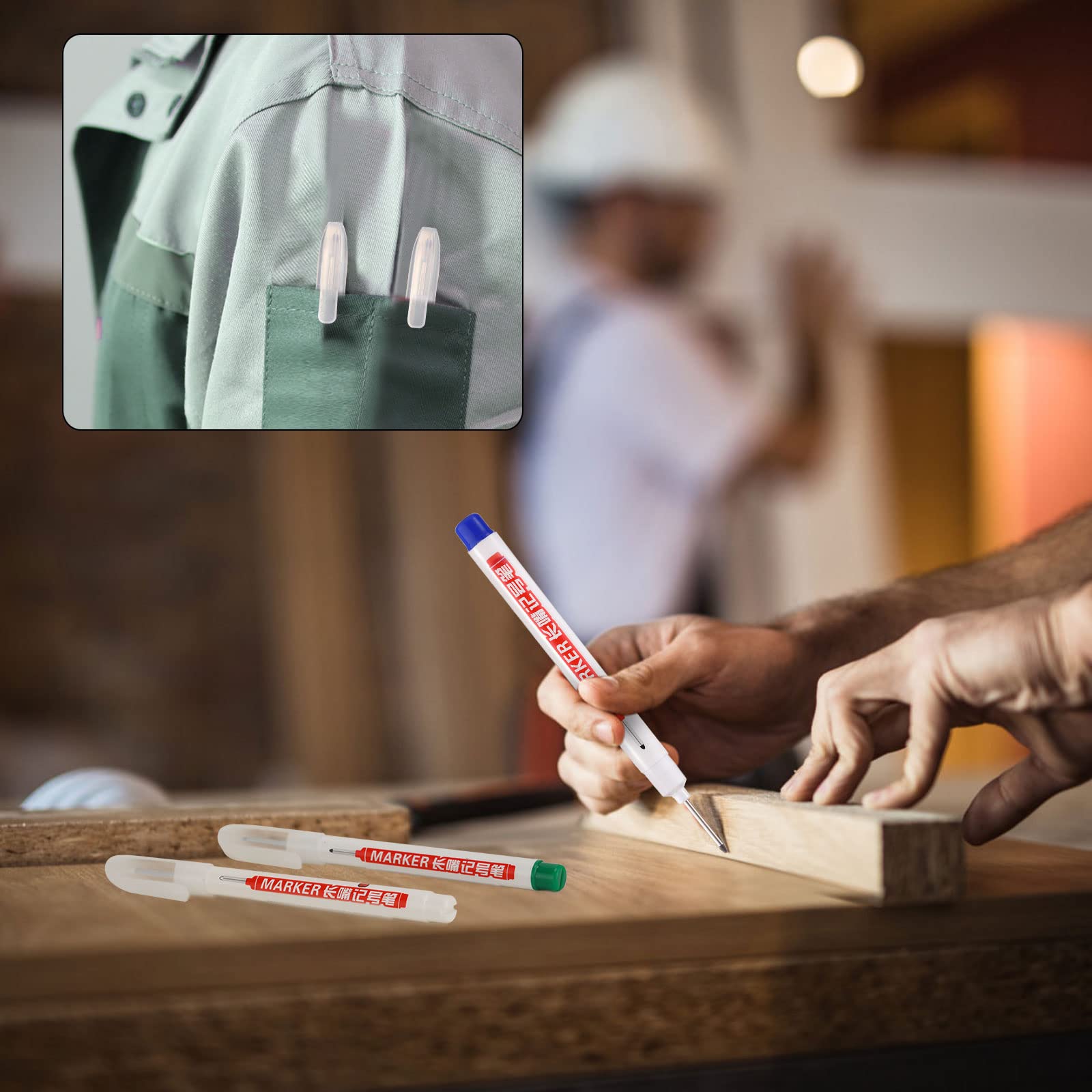 Marqueurs Trou Profond, 12paquets Marqueur Charpentier, Stylo Marqueur Indlbile Pointe Longue de... Clip Pratique pour un Accès Facile : Chaque marqueur est équipé d’un clip intégré qui permet de le fixer facilement à votre tenue de travail. Cieex Set Crayon de Charpentier arqueurs Trou Profond, Pointe à Tracer en Carbure, Crayon Marqueurs Pour Bois Et Métal XUIIOSOOKP Lot De 9 Marqueurs Pour Trous Profonds, 20 Mm, Pointe Extra Longue, Marqueur De Trous Pour Bois, Mur, Métal, Carrelage En Béton, Plastique, Noir, Bleu, Rouge Outils Artisan Charpentier Cette variété de couleurs facilite la gestion de vos marquages en vous permettant de coder visuellement vos travaux. Cela vous assure que vos outils sont toujours à portée de main lorsque vous en avez besoin, vous permettant ainsi de vous concentrer sur votre travail sans perdre de temps à chercher vos marqueurs. Polyvalence d’Utilisation sur Diverses Surfaces : Ces marqueurs sont idéaux pour une utilisation sur une large gamme de surfaces, y compris le bois, le métal, le plastique, les murs et le carton. De plus, ces marqueurs sont résistants à l’eau, ce qui signifie qu’ils conservent leur visibilité même en cas d’exposition à l’humidité, ce qui est idéal pour des travaux en extérieur ou dans des environnements humides. Les marqueurs sont équipés d’une pointe longue qui vous permet d’atteindre des zones difficilement accessibles, ce qui est souvent un défi lors du marquage de trous ou de lignes précises. Avec des options en noir, bleu, Vert,rouge et blanc, vous pouvez facilement coder vos marquages en fonction de leur signification ou de leur priorité. Que vous travailliez sur des projets de charpente ou de bricolage, ces marqueurs vous permettent de réaliser des tracés nets où d’autres outils échouent. Précision Optimale pour des Marquages Précis : Grâce à leur pointe longue de 20 mm, ces marqueurs de profondeur sont spécialement conçus pour atteindre les zones difficiles d’accès, rendant vos marquages plus précis et efficaces sur divers matériaux. Séchage Rapide et Résistance à l’Eau : Les encres de ces marqueurs sèchent rapidement, empêchant ainsi tout transfert de tache et garantissant que vos marquages restent clairs et lisibles. Identifiez rapidement les zones à traiter, ce qui augmente votre efficacité et réduit les erreurs lors de l’exécution de vos tâches. Ce set de marqueurs se distingue également par sa palette de couleurs variées.