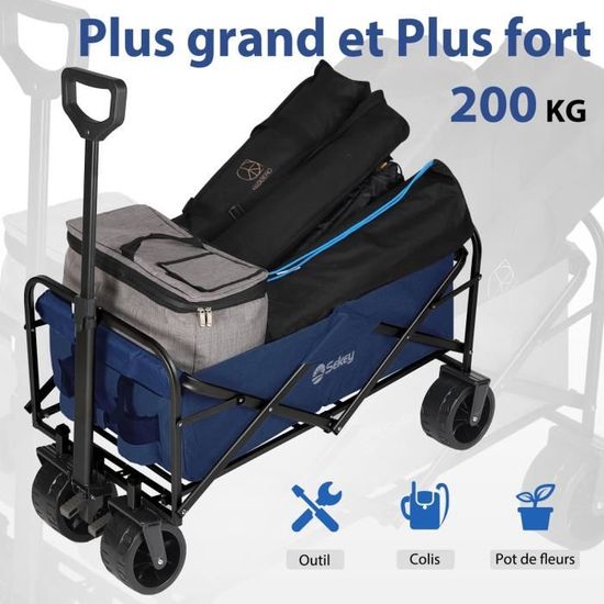 La poignée est réglable en hauteur et en angle, garantissant une utilisation ergonomique. Chariot de transport pliable pour plage - 80 kg Grâce à ses deux poches latérales, vous transportez facilement vos accessoires essentiels. Poignée réglable pour plus de confort - La poignée télescopique s’adapte à votre taille, évitant les douleurs au dos. Matériaux durables et design élégant - Fabriqué en tissu résistant à l’usure et structure métallique solide, ce chariot noir sobre et moderne est fait pour durer – un compagnon fiable pour de nombreuses saisons. 100L Chariot De Plage Pliable Poignée Réglable Chariot De Plage Pliable Poignee Reglable Chariot De Jardin Chariot A Roulettes Tout Terrain Pour Exterieur Camping Festival Camping Coursesjardin Avec Jusqua 120kg 90733038 Stable, robuste et pratique, il vous accompagnera dans toutes vos aventures en plein air. Que vous soyez grand ou petit, tirez le chariot en toute aisance et sans effort. Pliage rapide et rangement compact - Le mécanisme pliable intelligent permet de plier le chariot en quelques secondes. Transport facile sur tous les terrains - Grâce à ses grandes roues pivotantes à 360°, ce chariot assure une maniabilité parfaite sur le sable, le gravier ou l’herbe. Taphnw Chariot de Transport Pliable, Charge maximale de 110 kg, Chariot Grande capacité et charge robuste - Avec une capacité de 100 L et une charge maximale de 120 kg, ce chariot pliable transporte facilement glacières, jouets, sacs ou provisions sans effort ni compromis sur la stabilité. Chariot De Courses Pliable, Multifonction, Portable, Avec Couvercle...