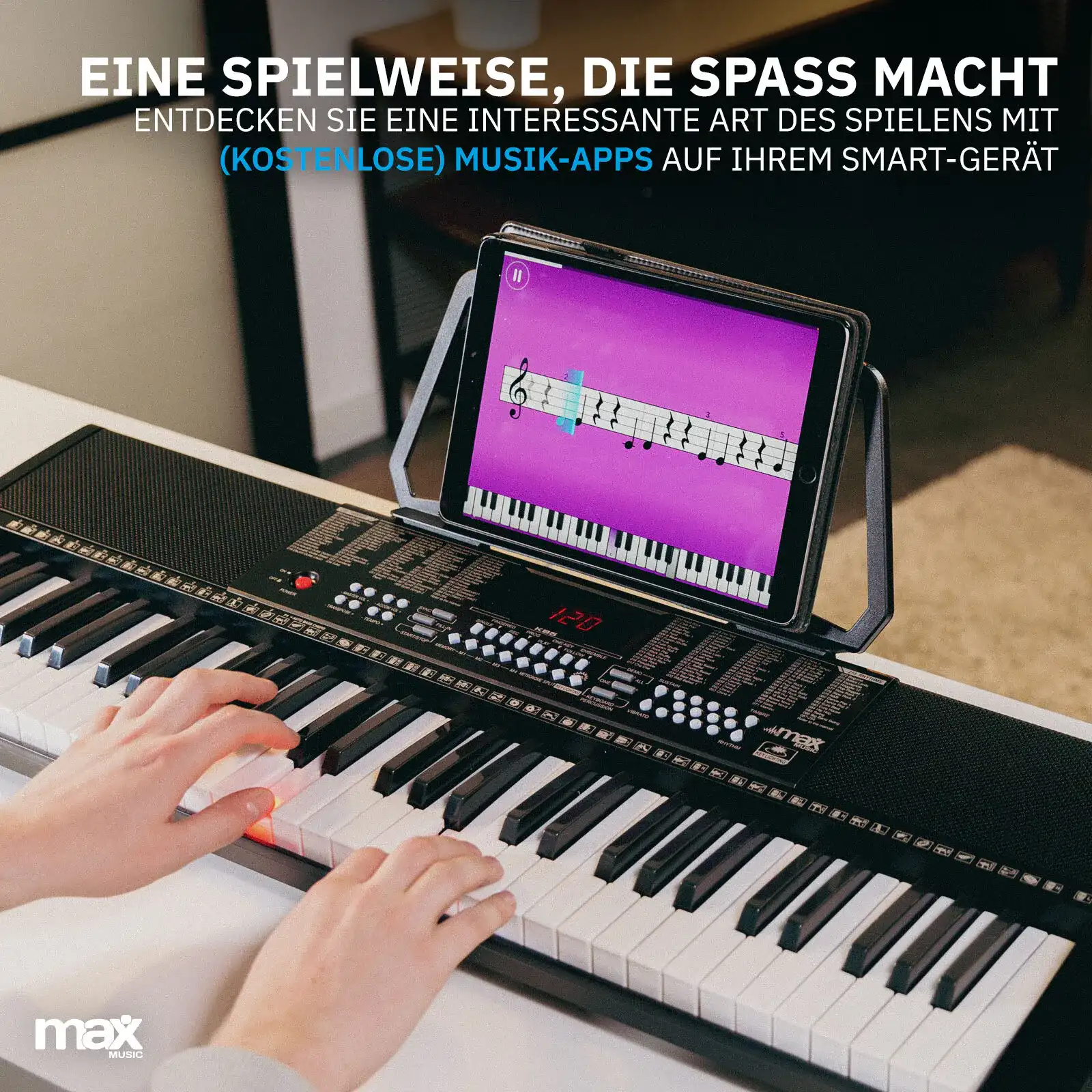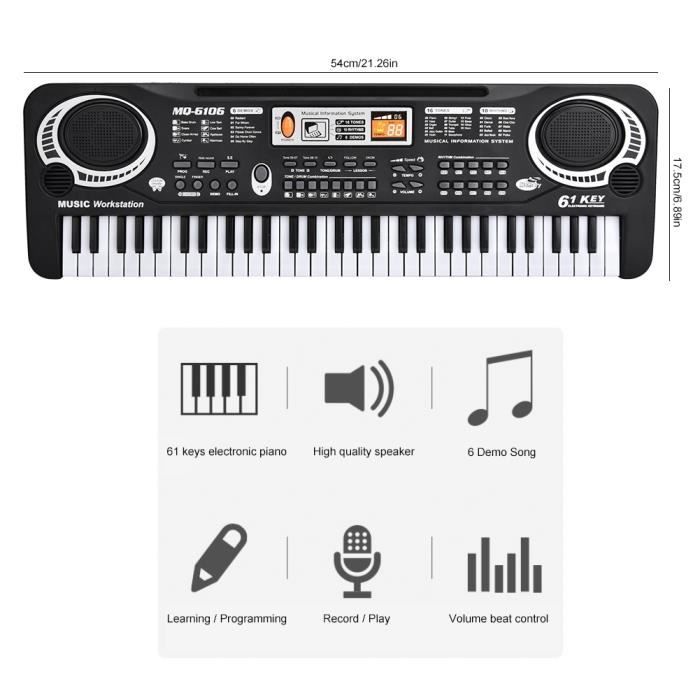Clavier USB Piles Piano Numérique SALUTUY 61 Touches Avec Microphone & Support - Multifonction : Démos, Rythmes, Karaoké - Noir Apprentissage Musique Enfants Clavier piano électrique 61 touches pour débutants/professionnels, clavier musical portable et lumineux, deux haut-parleurs intégrés avec écran LED, pupitre, microphone et banc (A) - Instruments de musique Les 5 eilleurs claviers de piano nuériques 61 touches Les 5 eilleurs aplis pour pianos/claviers