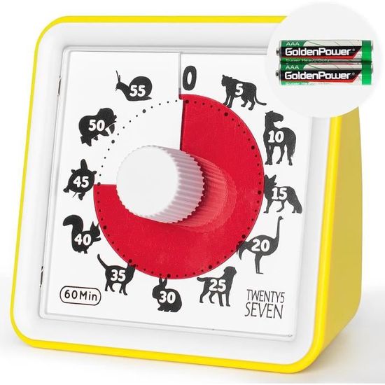 En raison de différentes mesures manuelles, veuillez permettre une différence de taille de 1 à 2 cm. Son design vibrant et sa fonctionnalité font du chronomètre Rainbow Disk un accessoire indispensable pour améliorer la productivité et l'organisation là où vous en avez le plus besoin. Gestionnaire de Temps Durable: Horloge Visuelle avec Minuterie, Compte à Rebours Silencieux, Sans Tic-Tac, Grand Compte à Rebours Visuel, Volume Réglable, Placement Flexible pour Classe Maison Cuisine (Noir Minuteur Visuel Timer Enfant,60 Minutes Chronometre Enfant Et Compte À Autonomie par Simplicité : Conçu avec un bouton de réglage direct, ce chronomètre visuel pour permet de gérer le temps en toute autonomie, éveillant créativité et imagination pendant la lecture ou les activités manuelles à la maison Ce minuteur de cuisine capture efficacement leur attention pendant les activités culinaires ou les moments d'apprentissage ludique, parfaitement amusement et concentration. Compagnon de Visualisation du Temps : Le minuteur visuel implique les dans un processus d'apprentissage ludique en les aidant à appréhender les concepts temporels grâce à son design innovant avec diminution visuelle du temps, idéal pour enseigner la gestion du temps et développer les capacités d'organisation durant les devoirs ou activités en classe. Temporelle Simplifiée : La minuterie visuelle pour garantit une gestion précise du temps via son affichage intuitif, aidant les à rester concentrés et organisés lors de tâches en classe ou d'activités culinaires, pour une efficacité optimale sans effort Minuteur Visuel Numérique, Compte à rebours de 60 Minutes, Chronometre... Caractéristiques: Taille du produit: diamètre: environ 10,3x4,5 cm / 4,06x1,77 pouces Matériel: Abs Poids: 130 g Alimentation: nécessite 1 batterie AA (batterie non incluse) Liste de colisage: 1 * Kid Timer Visual Countdown (non inclus de la batterie) Note: En raison de différents paramètres d'éclairage et d'écran, la couleur de l'élément peut être légèrement différente de l'image. Configuration Simplissime Doté d'un bouton de réglage facile d'emploi, ce timer visuel pour devient un compagnon apprécié des jeunes utilisateurs qui l'utilisent sans effort, développant leur autonomie pendant les routines de jeu ou les devoirs Le chronomètre visuel Rainbow Disk pour la classe est un outil d'apprentissage silencieux et polyvalent conçu pour améliorer l'attention et la gestion du temps dans divers contextes.