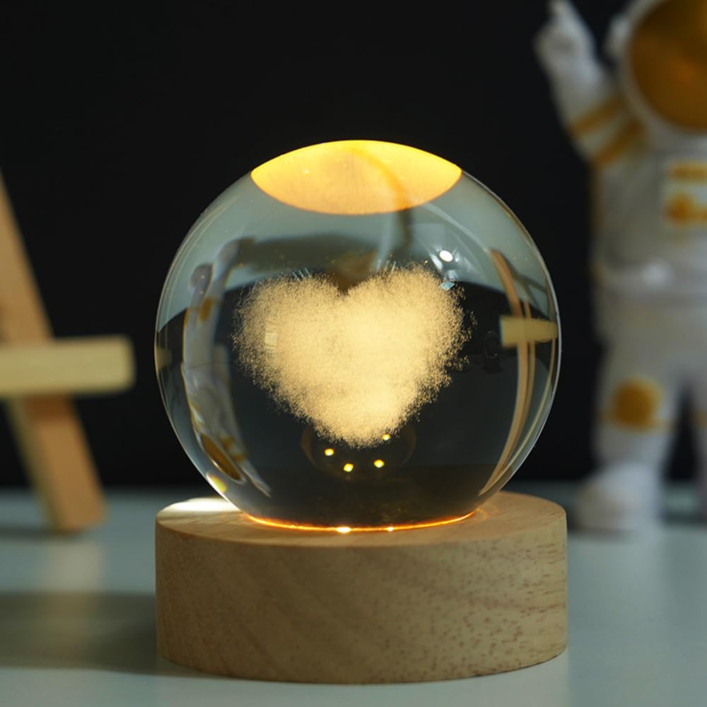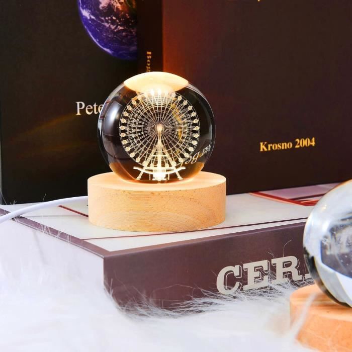 Fabriquée en bois et en verre, sa gravure intérieure en forme de cœur améliore la diffusion de la lumière de 30 % par rapport au verre standard, créant une lueur envoûtante. Veilleuse moderne en cristal avec cadre en bois et motif cœur, éclairage LED écoénergétique pour bibliothèques et rebords de fenêtre Caractéristiques : Avec sa lumière LED haute luminosité et son éclairage doux à 360°, cette veilleuse en cristal gravé allie savoir-faire artisanal et décoration d'intérieur fonctionnelle pour un éclairage d'ambiance enchanteur. Décore parfaitement les chambres, les bureaux ou les étagères, créant une ambiance chaleureuse pour la détente, la lecture ou les soirées romantiques. En raison des différences entre les écrans, la couleur réelle de l’article peut varier de celle de la photo., 1 Cette décoration de bureau écoénergétique consomme 70 % d'énergie de moins qu'une lampe traditionnelle et apporte une touche de modernité à un intérieur moderne. Lampe de chevet led boule de cristal • Ma Lampe de Chevet Lampe Ambiance JDIEOQA Lampe De Nuit LED Boule De Cristal Lumineuse Avec Lampe Bureau Moderne Suspension en verre opale - Élégante lampe déformable en laiton et verre blanc