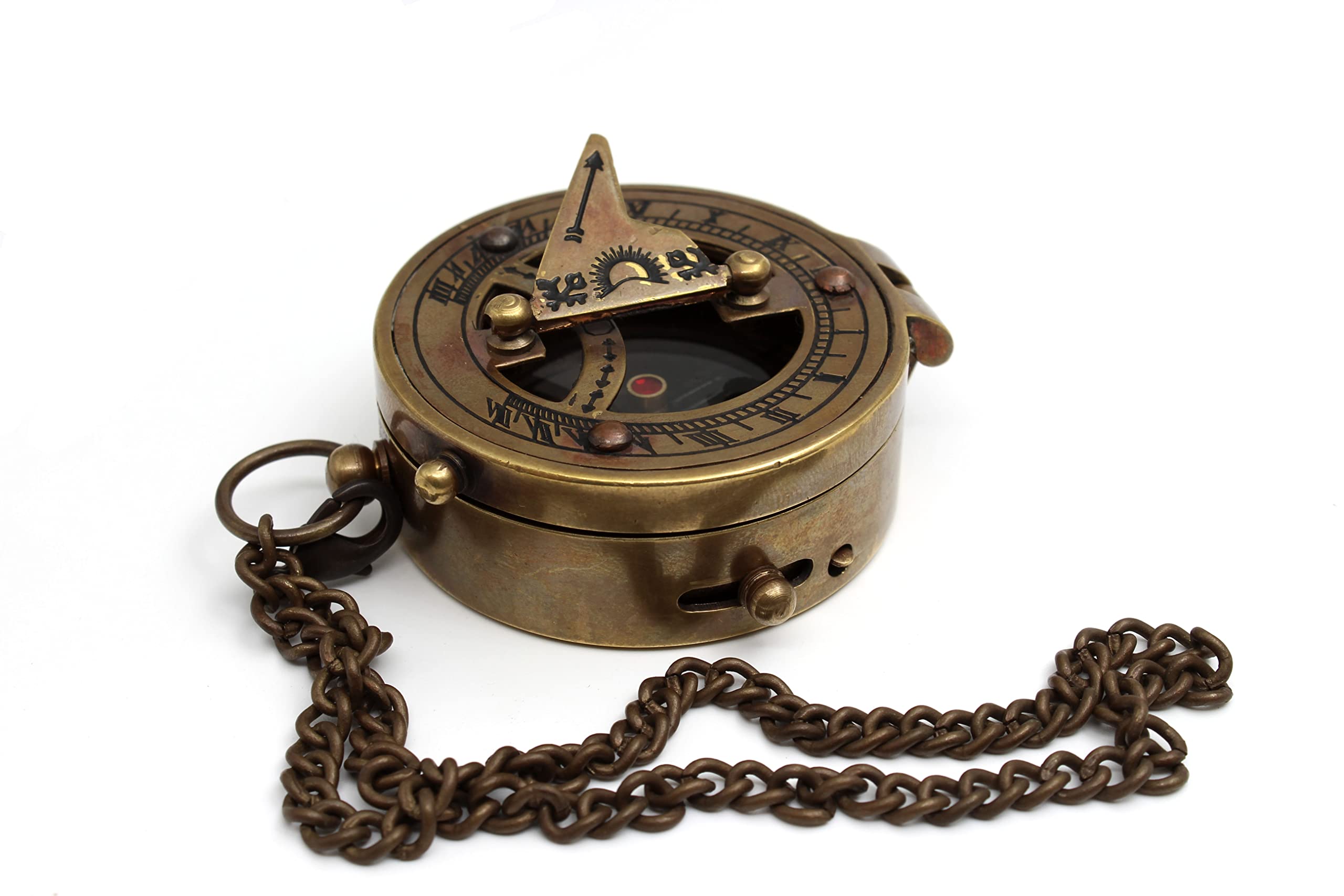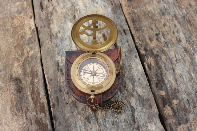 Cadran solaire antique en laiton massif livré avec une boîte en bois massif. Nauticals Boussole en laiton fait à la main avec cadran solaire antique marron finition antique avec boîte en bois marron idéal pour un cadeau. Cette boussole en laiton avec finition antique mesure environ 6,3 cm de diamètre Cette boussole peut présenter quelques imperfections cosmétiques mineures telles que de petites rayures. Idéal pour le suivi, le camping, la randonnée, les voyages et les activités de plein air. Excellent ajout à une collection nautique. Un ajout vraiment impressionnant à une collection nautique. Matériau : laiton massif, couleur : finition laiton Ce magnifique cadran solaire nautique comporte une boussole intégrée, des chiffres romains et des vis de jambe réglables. Avec une construction en laiton jaune solide, ce garde-temps décoratif peut être affiché presque n'importe où Utilisez-le pour naviguer en randonnée ou en camping. Compas boussole 10cm maritime réplique laiton cadran solaire cuir style Boussole En Laiton Rétro Cadran Solaire Boussole En Laiton Antique - Boîte Bois - Style Maritime Vintage - 12.7cm Boussole Vintage Collection Cadeau Voyageur Les trois pieds du cadran solaire peuvent être ajustés jusqu'à ce que le cadran solaire soit de niveau. Les boussoles sont utilisées depuis des années pour aider les voyageurs à déterminer leur emplacement ainsi que l'emplacement de leur destination. Boussole nautique en laiton faite à la main avec cadran solaire antique marron finition antique avec boîte en bois marron idéal pour cadeau C'est un instrument de navigation. Boussole magnétique décorative en laiton.