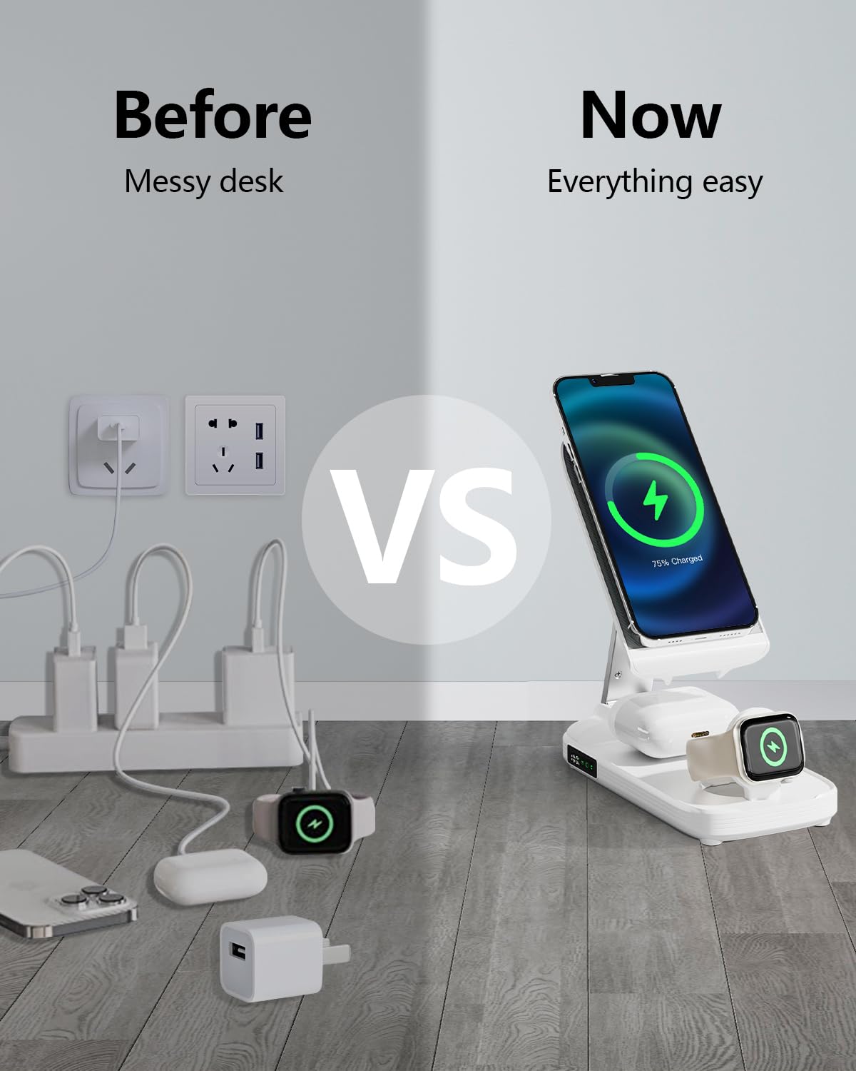 Chargeur Sans Fil Pliable 3 En 1 | Boutique Kuulaa Tech Avec un design pliable et des dimensions similaires à celles d'un smartphone, cette batterie externa est incroyablement facile à transporter. Station De Charge Apple Chargeur Sans Fil Pliable 5 En 1, Charge Rapide De 20W Et Une Batterie Externe 10000mah 20w Cette puissante baterie externa de 10000mAh est vraiment une centrale de chargement. Elle prend en charge toutes les séries d'iPhone 16/15/14/13/12, toutes les séries d'iWatch d'origine et les AirPods 2 / 3 / Pro / Pro 2, ainsi que tous les écouteurs sans fil. Elle simplifie ta routine de recharge, permettant de recharger plusieurs appareils avec un seul accessoire Fonctionnement du chargement sans fil. Découvrez la différence entre MagSafe et Qi, les bases et les différents types de chargement sans fil, et des conseils pour vous assurer d'utiliser votre chargeur sans fil correctement Chargeur sans fil pliable ultra puissant - Test et Avis - Prix Maroc Grâce à la technologie d'une recharge rapide avancée, cette batterie externa recharge rapidement et efficacement les iPhone des séries 16/15/14/13/12, l'iWatch et les écouteurs sans fil compatibles. Cette batterie externa est compatible avec une large gamme de dispositifs. Compact et portable, elle offre une recharge rapide et s'adapte parfaitement aux besoins quotidiens et aux occasions de voyage