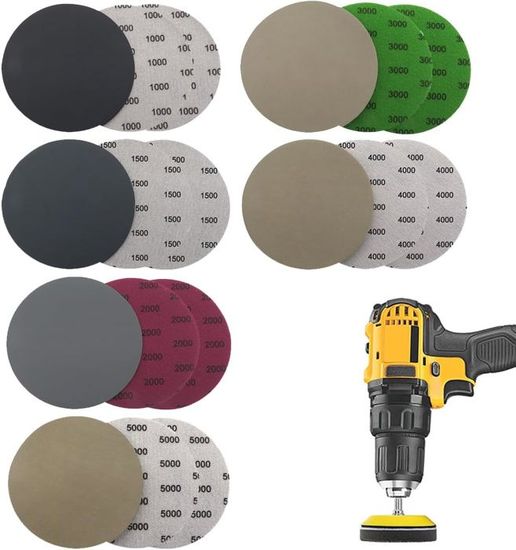 Disque de Ponçage, 80 Pièces Disque a Poncer 125mm Papier Ponceuse Papier A Poncer Carrosserie 60 Feuilles De Papier De Verre 125 Mm, Papier Abrasif Grain 1000/1500/2000/3000/4000/5000, Disques De Ponçage Pour Ponceuse Excentrique,Compatible Sec Et Humide, Pour Métal, Bois, Verre, Voiture Disque Abrasif 125mm Il est utilisé dans les moules de quincaillerie, la peinture automobile, la construction navale, les meubles de menuiserie, le travail du bois, l'artisanat et d'autres domaines industriels. ✨【Matériau de haute qualité】Papier abrasif est composé de carbure de silicium et de papier latex de haute qualité. Le ponçage humide peut minimiser les rayures, empêcher le papier de verre d'être bloqué par la poussière et réduire la poussière dans l'air. Découvrez nos offres Papier à poncer à l'eau : large sélection de produits au meilleur prix | Livraison gratuite à partir de 10€* | Entreprise française | Paiement 4x possible ✨【Multi-grained size】Le papier poncer a 7 tailles de particules différentes : 1500/2000/3000/4000/5000/7000/10000 papier de verre de granularité, qui répond aux différents besoins de meulage grossier à polissage fin, et convient à diverses utilisations de bricolage et d'ingénierie professionnelle. Jeu de papiers de verre ronds ø 125 mm | - 600 / 800 / 1000 / 1500 / 2000 / 3000 / 4000 / 5000, 8 tailles de disque de sable différentes, 3 feuilles par taille, papier de verre de rugueux à fin pour répondre à presque tous vos besoins de polissage ✨【Package List】Le set contient 28 pièces rond papier de verre, taille 125 mm, et 4 pièces de chaque taille de particule. Il est résistant à l'usure, antistatique, a une bonne flexibilité, une distribution uniforme des particules de sable et moins de poussière.
